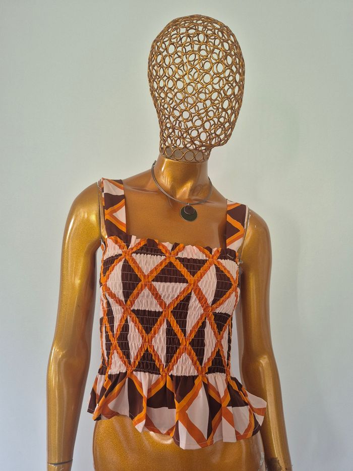 Top Plissé Femme Orange et Marron Taille S/36