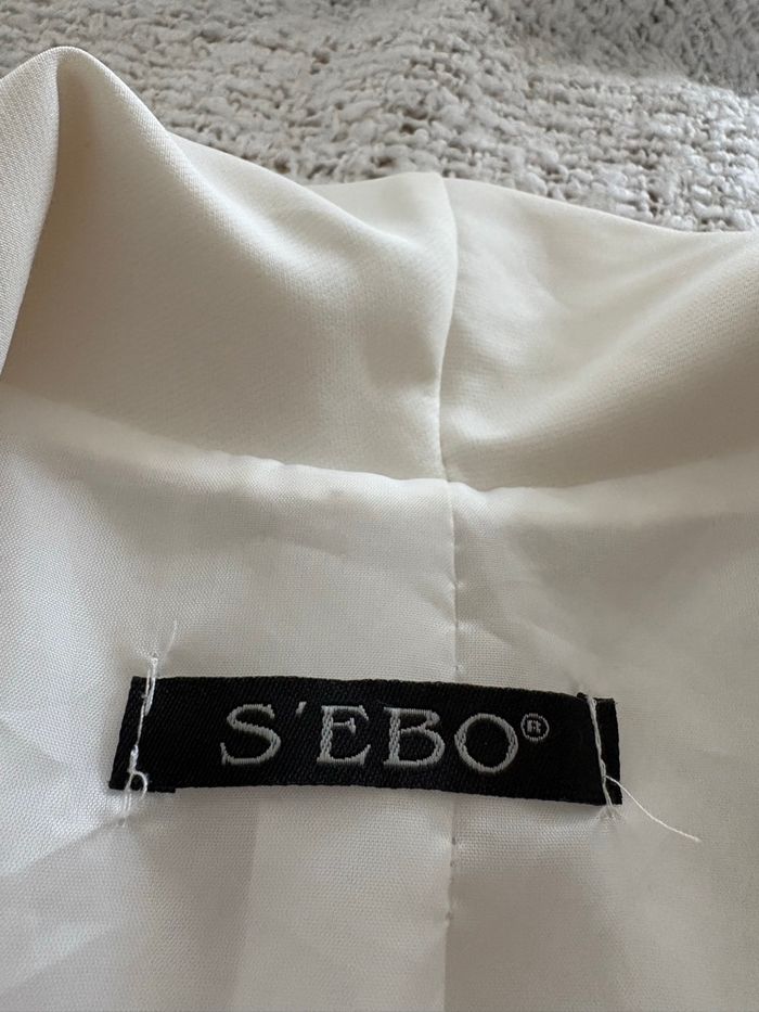 Veste blazer « S Ebo » couleur ivoire taille M TBE (contient des épaulettes) Largeur épaules 39 cm Largeur prise sous les aisselles 48 cm Longueur 72 cm