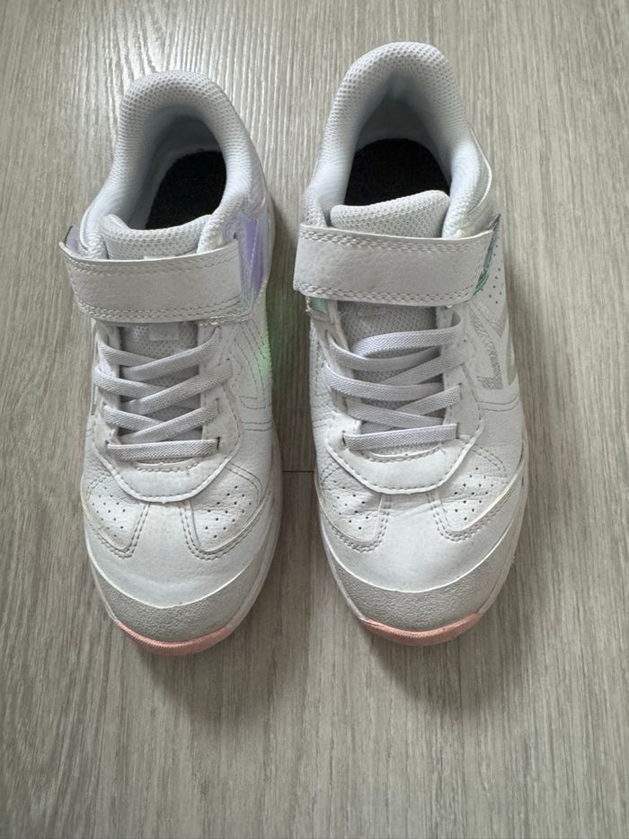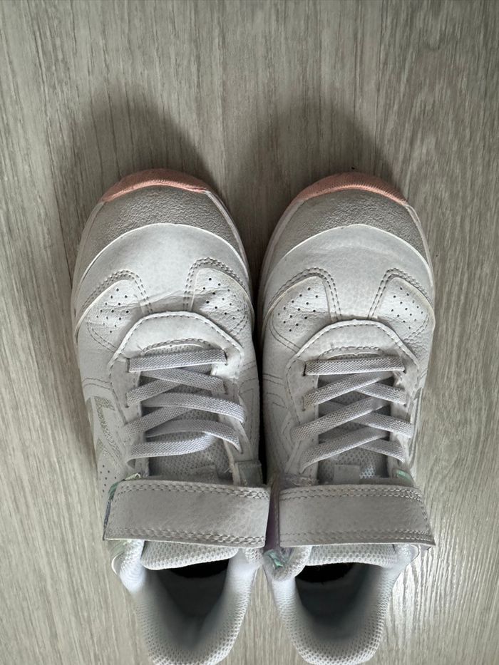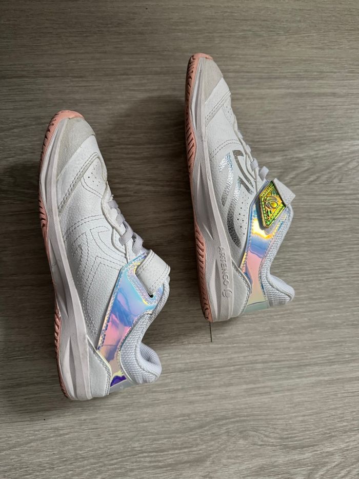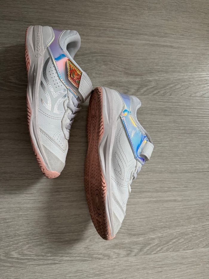 Vend baskets unisexe, taille 35, très bon état, marque décathlon artengo, peu porté, couleur gris/blanc