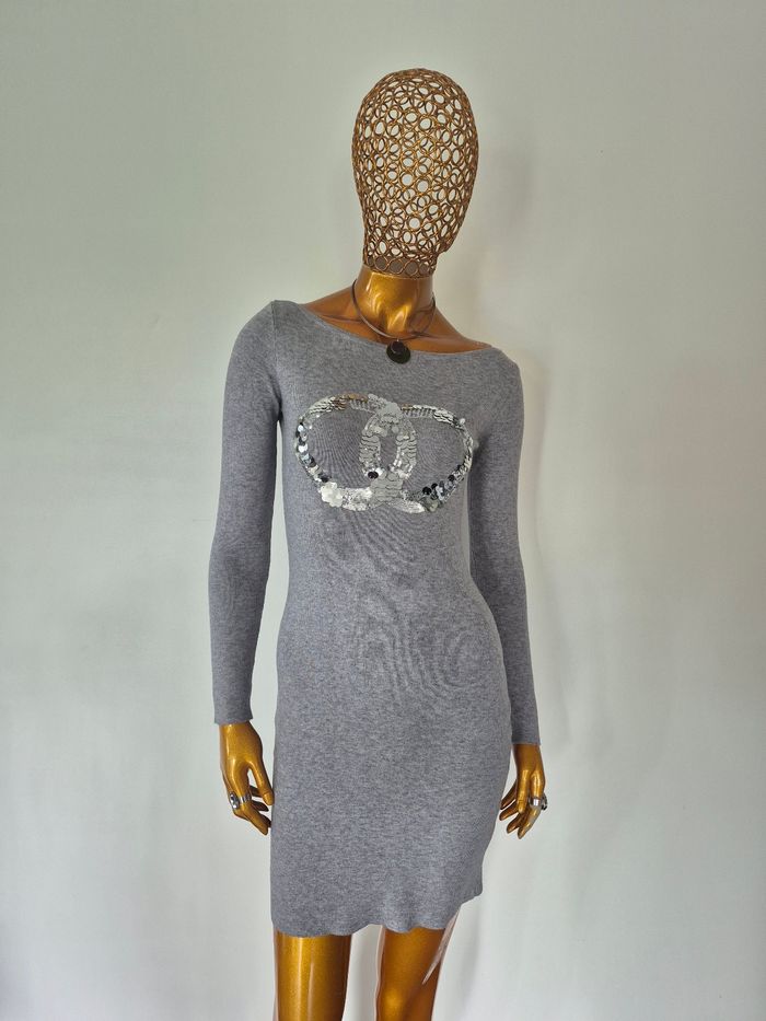 👗 Robe Courte Manches Longues Femme Couleur Grise avec Strass