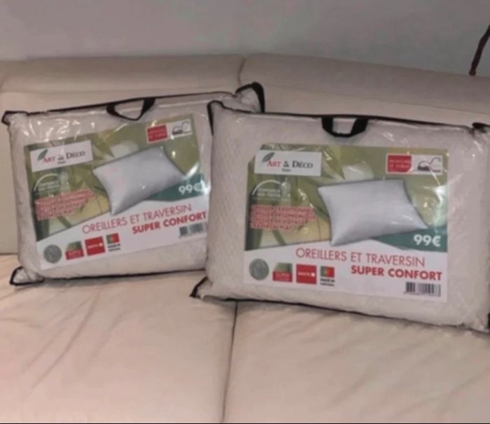 Vends un lot de 2 oreillers ergonomiques de la marque de prestige Art & Déco Paris. Ils sont totalement neufs, encore sous emballage d'origine scellé (jamais ouverts).