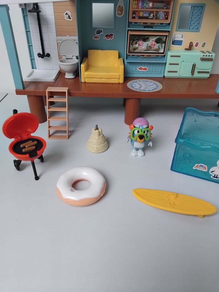 🏖 Vends lot de Jouets Bluey: Maison de la Plage. Complète, avec tous les Meubles (Cuisine, Toilettes, Fauteuil), le Barbecue, la Piscine, des Accessoires de Plage et la Figurine de Bluey. 👍 Jouets Bluey de Seconde Main, en Très Bon Etat, aucune pièce cassée et propres, prêts à jouer. 😍 Bon Plan Beebs! 😍 -25% sur cet article*! 😍 Avec le Code BONNET25 à indiquer lors de la finalisation de votre commande! *Valable jusqu'au 17/01/2026 inclus, voir conditions détaillées sur la page d'accueil du site. 🛍 Groupez vos Achats et Cumulez les Promos! ✅️ Remise sur Lot Offerte dès le 2éme article, jusqu'à -10% ! 📦 Expédié en Points Relais. ✅️ Economisez -20% sur les Frais de Port Pour une livraison plus rapide, privilégiez Mondial Relay. Dépôt des colis au point relais du lundi au samedi. Rèf. Annonce : BLUEY - B016 Maison de Plage avec Piscine Bluey