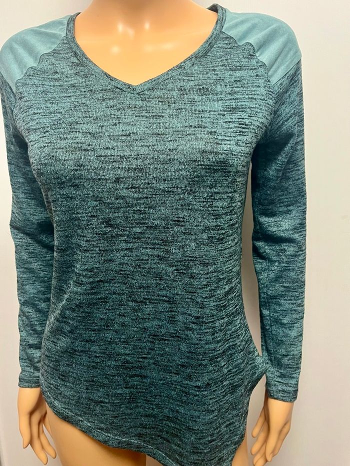 Pull col V de marque cache cache De couleur vert chiné Taille 2 TBE