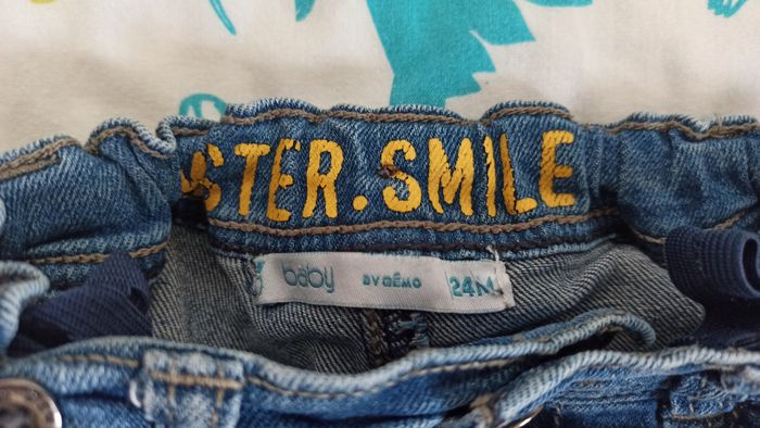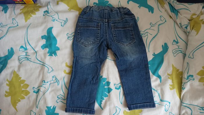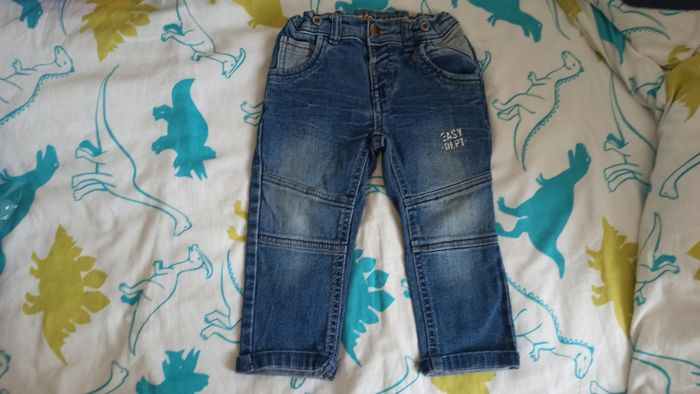 Jean 24 mois (86 cm). Usure normale aux genoux. Peut se resserrer à la taille