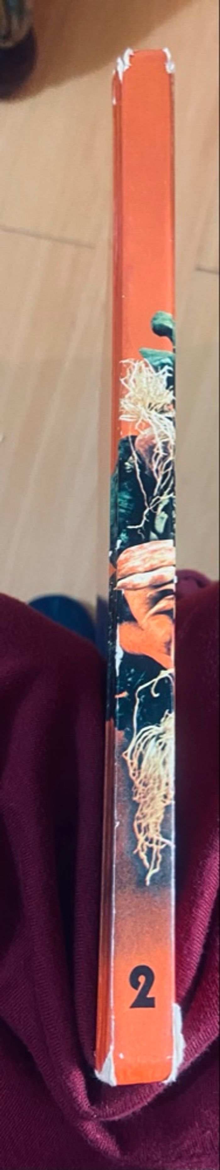Un peu abîmé en haut et bas de la tranche dû au frottement sur l’étagère