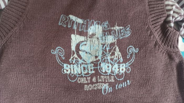 Pull sans manche avec t-shirt manches longues intégré 2 ans. Dessin un peu craquelé