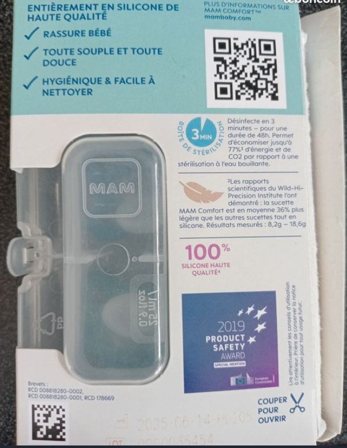 Gamme Mam Confort+ : entièrement en silicone, souples et adaptées à la morphologie de bébé.