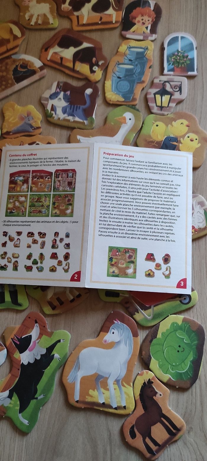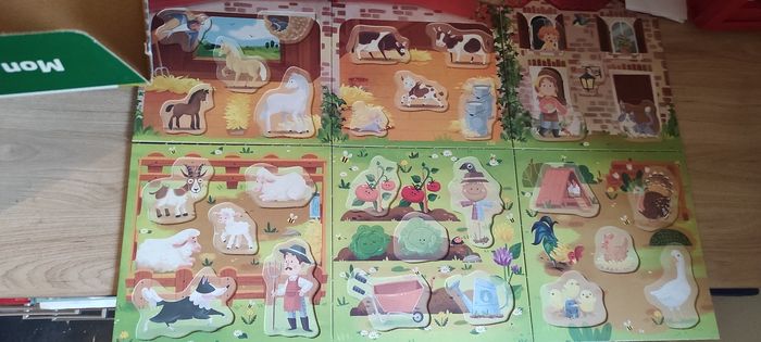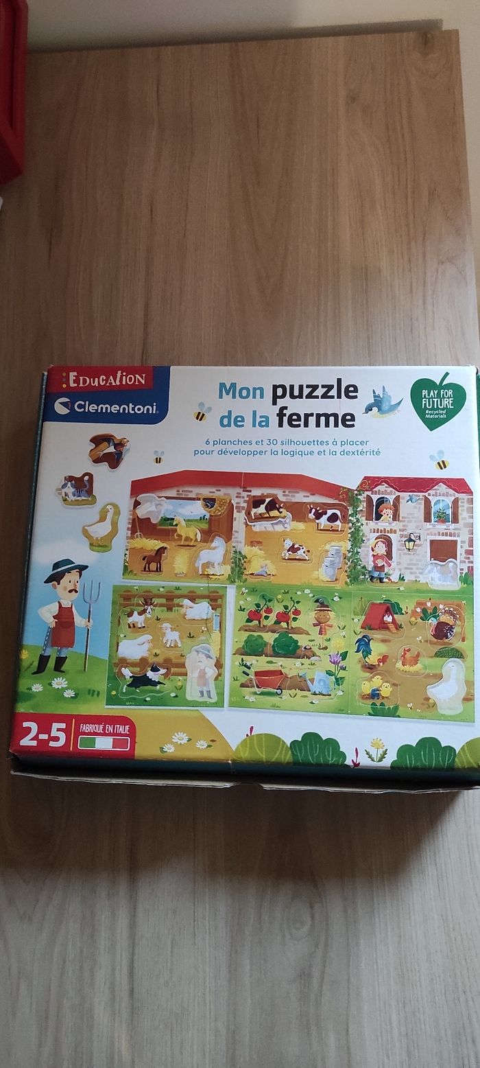 Grand puzzle encastrement 6 planches 30 pièces 2 à 5 ans Complet , vendu dans sa boîte et avec la notice Très bon état général Pensez aux lots réductions activées MON PUZZLE DE LA FERME DÉCOUVREZ LE MONDE de la ferme avec 'Mon Puzzle de la Ferme' de Clementoni. Chaque pièce représente un élément du quotidien agricole pour éveiller la curiosité des tout-petits. LUDIQUE : Ce jeu permet à l'enfant de découvrir les objets, les formes et les animaux de la ferme. Tout ce qui fait parti de l'univers de la Ferme. Il pourra développer sa motricité fine. EDUCATIF : Après avoir classé les éléments et identifié les formes, l'enfant peut les placer correctement dans l'environnement adapté puis rapprocher chaque planche pour reconstruire la ferme CADEAU LUDIQUE ET ÉDUCATIF POUR JEUNES ENFANTS – Une idée de cadeau faite pour les fans de la ferme, combinant divertissement, apprentissage et progression. FABRIQUÉ EN ITALIE AVEC DES MATÉRIAUX RECYCLÉS DE QUALITÉ – Clementoni accorde une attention particulière à l’environnement en privilégiant des composants recyclés et durables, sans substances nocives