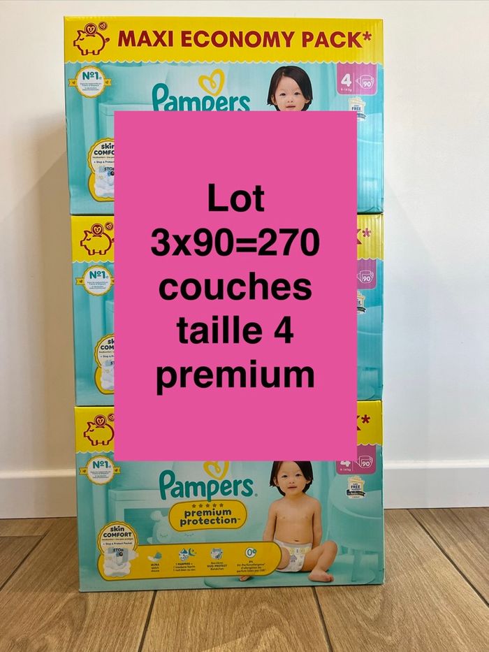 Lot 3 packs – 270 couches Pampers Premium Protection T4 – Neuf