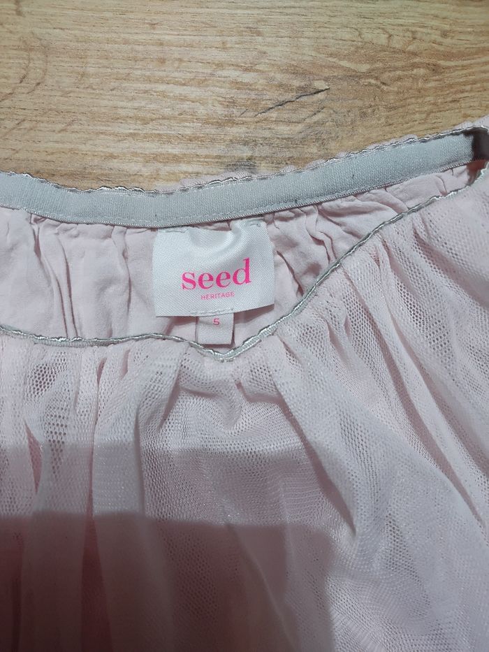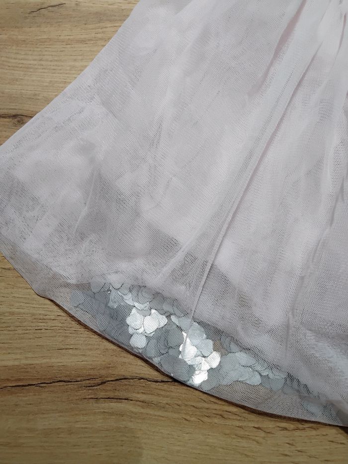 Jupe rose pâle avec tulle remplie de petits coeurs argentés et doublure. Marque Seed heritage taille 5 ans.