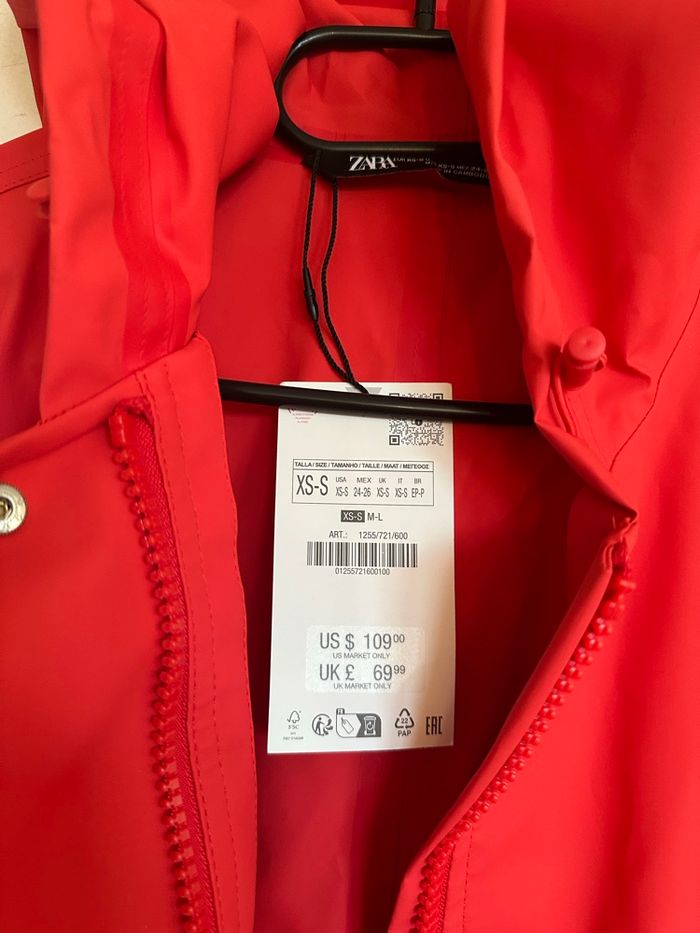 Imperméable rouge très long XS/S femme Zara
