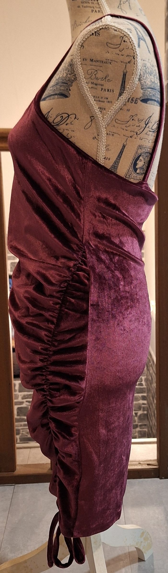 Robe à bretelles bordeaux en velours doux - photo numéro 2