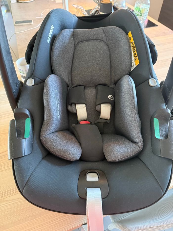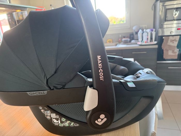 Vend siège auto cosy Groupe 0+ pour voiture et poussette pebble 360 de la marque maxi Cosi. Convient de la naissance à 15 mois grâce au réducteur. Vendu avec clip poussettes.