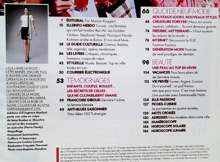 Magazine Elle n°3395 janvier 2011 - photo numéro 4