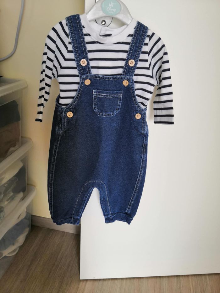 Ensemble salopette denim + tee-shirt imprimé 6 mois Plus Collection