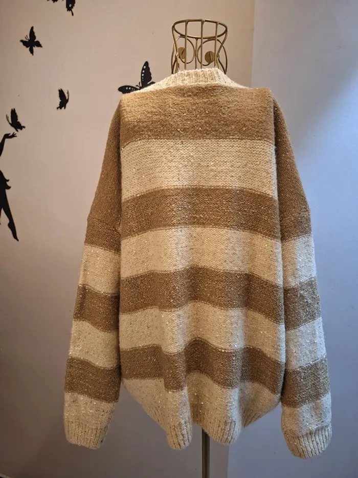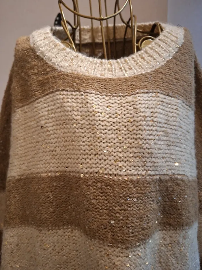 Pull beige & crème - sequins donnant un effet scintillant subtile - longueur 58 cm - coupe droite - taille unique idéale pour une taille L ou 40 - état sans défaut ps : je ne fais pas de photo portée #pullbeige #pullsequin #pulhiver