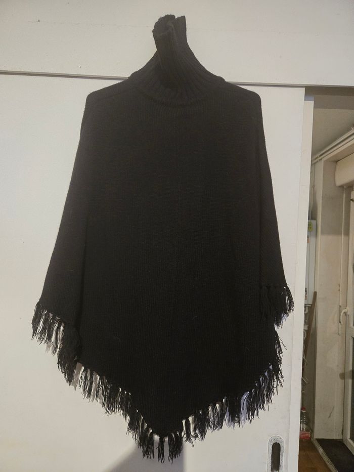Poncho / cape noir a col roulée - photo numéro 3