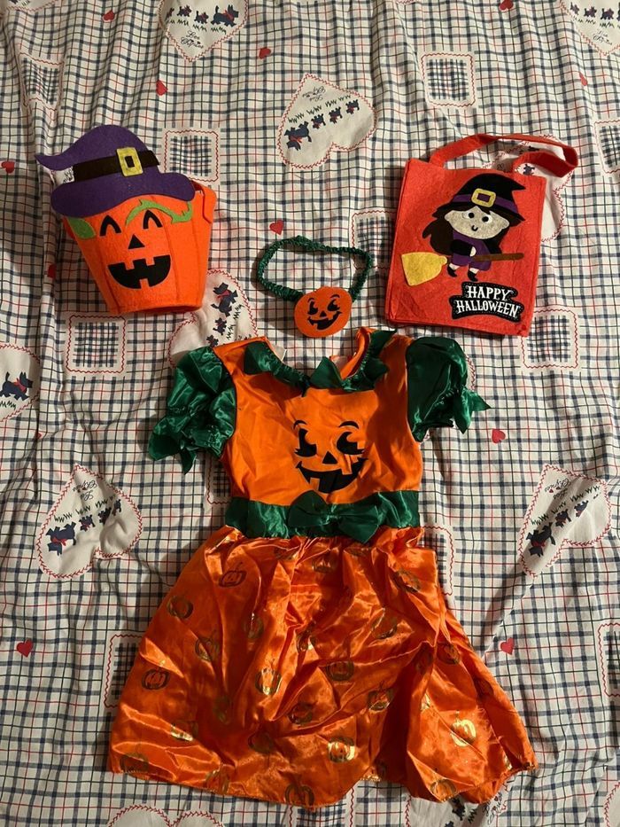 Déguisement citrouille avec serre tête sac et panier. 1/2 ans