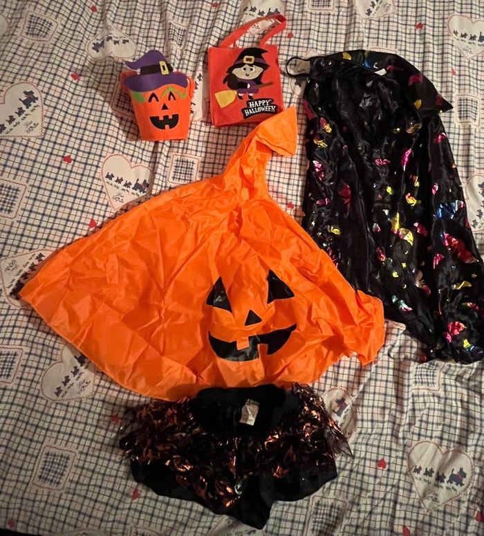 Lot halloween jupe,poncho,cape,sac,panier 2/3 ans