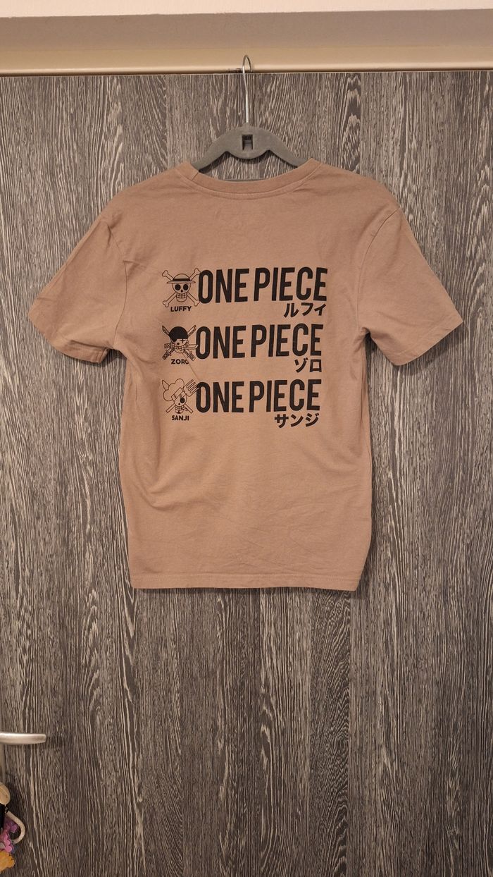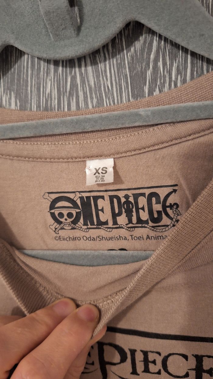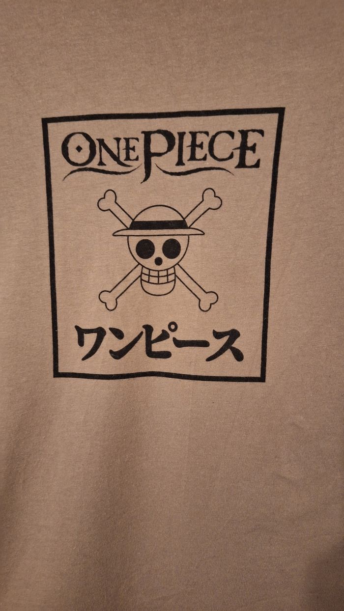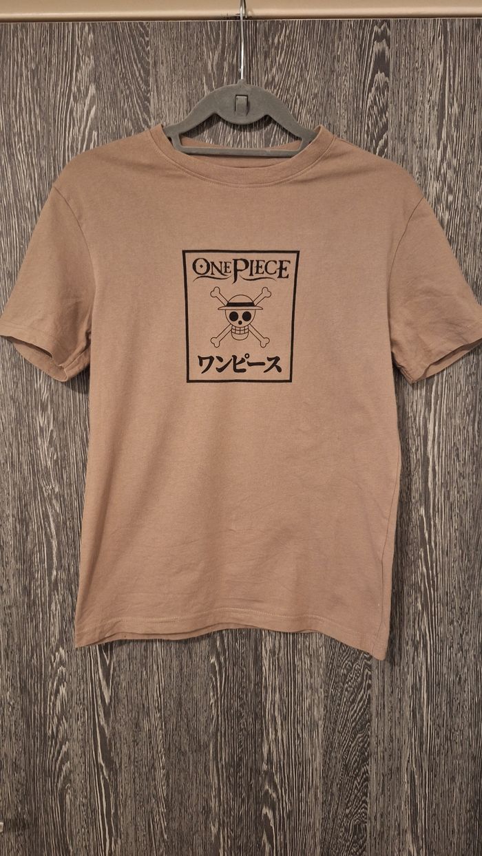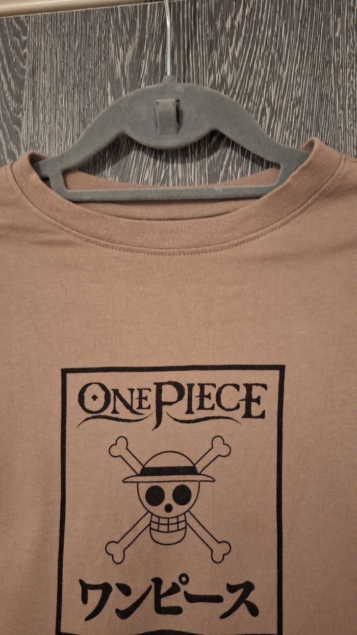 Bonjour ✴️Je vends ce tee-shirt en très bon état ✴️De la marque One Piece ✴️Taille XS- correspond à un 14ans ✴️Couleur beige imprimé One piece Noir ✴️Manches courtes et col rond ✴️100% coton