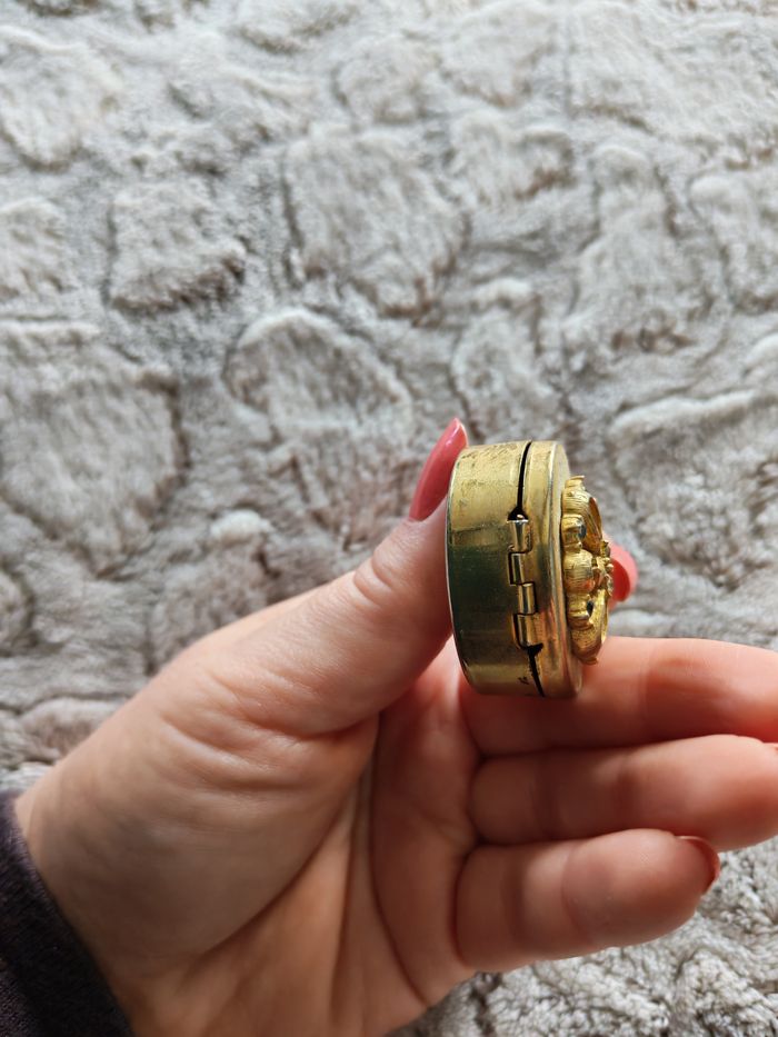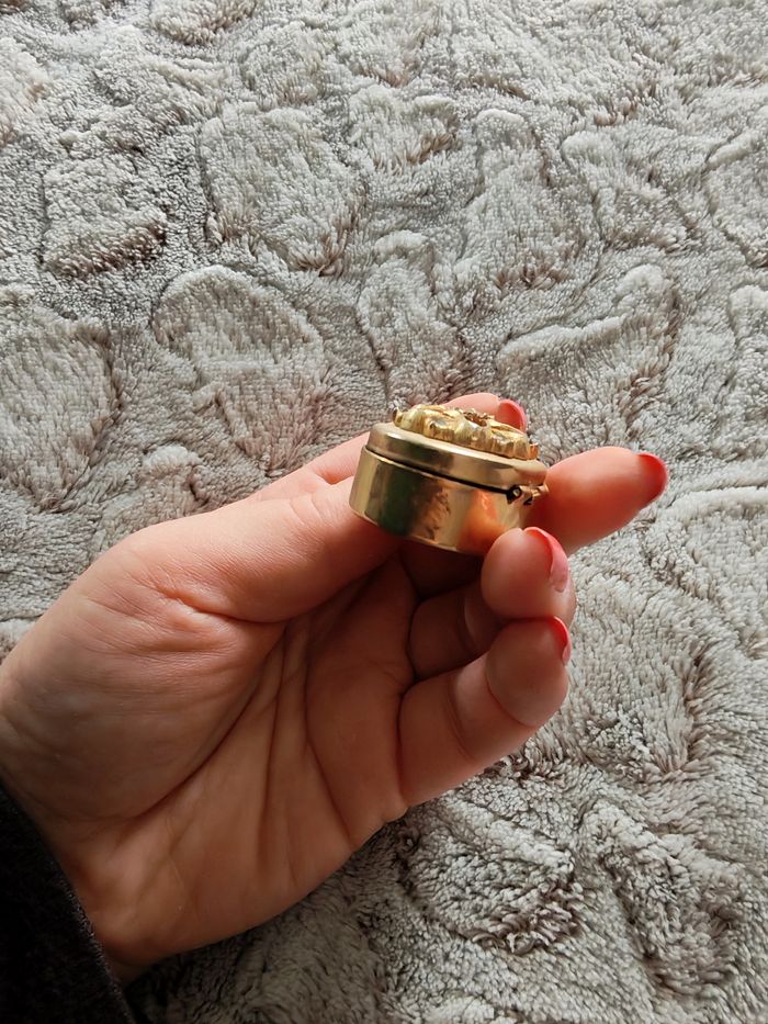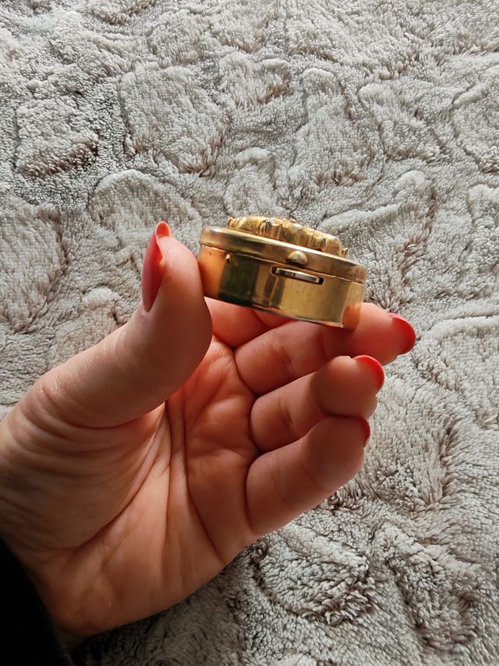Petite boîte à souvenir en métal doré vintage dessus fleur en pièrres - photo numéro 8