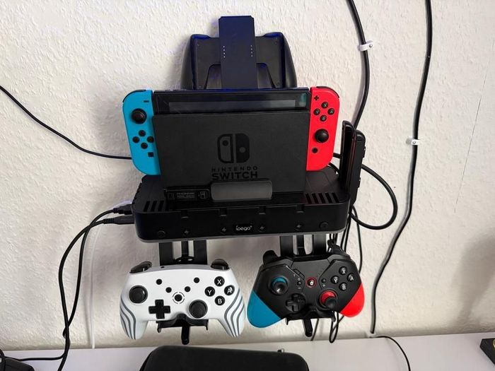 - 2 manettes (une blanche et une noire, la manette noire a un bouton ZR légèrement abîmé, mais elle fonctionne parfaitement)