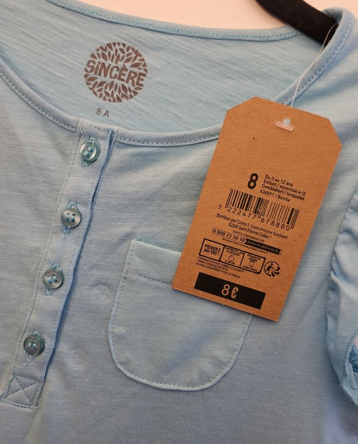 Je vends cette combi-short enfant de la marque Sincère, de couleur turquoise.