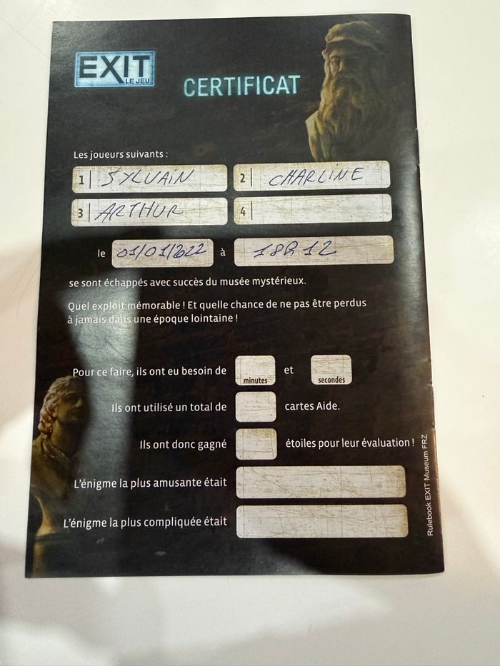 Niveau débutant. Seulement écrit sur le certificat ce qui n’entrave pas le jeu. Rien de déchiré, découper plié…