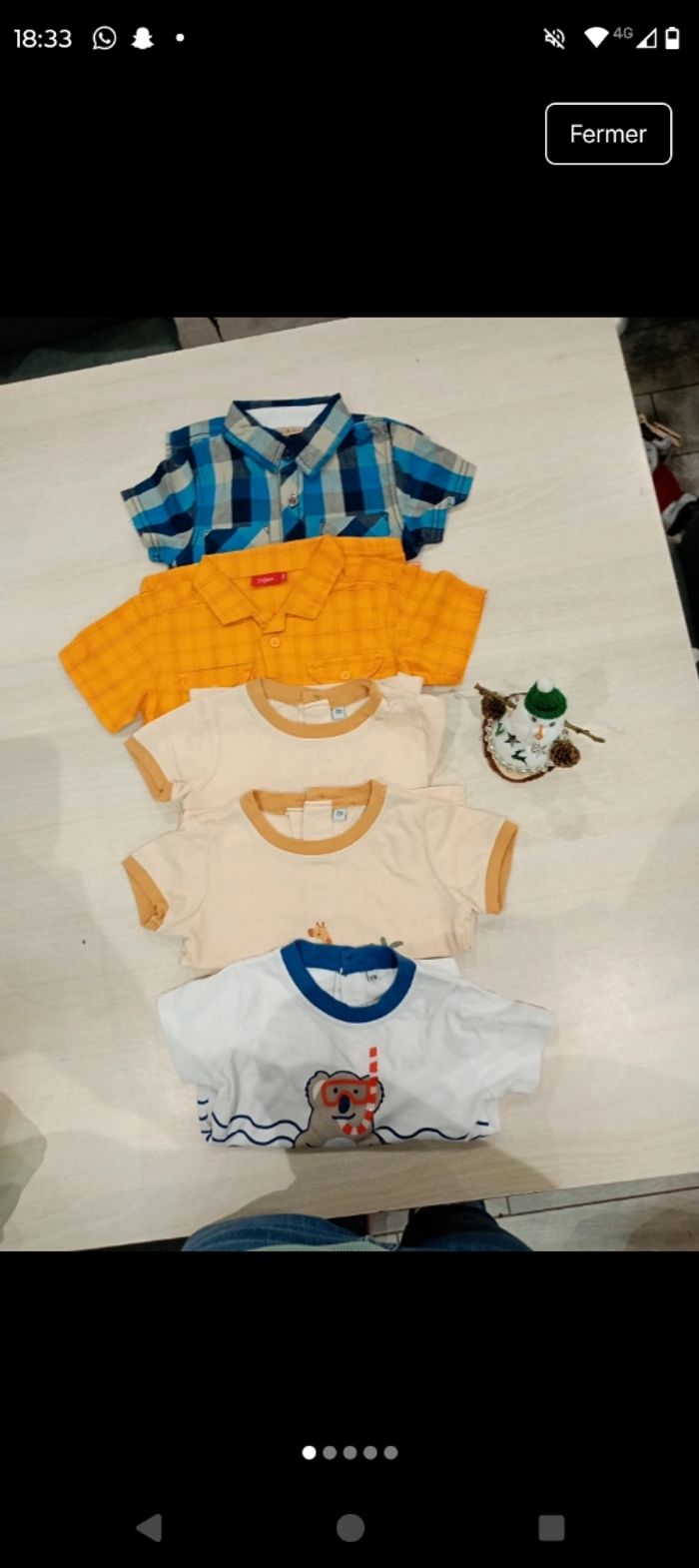 Lot composé de 2 chemises manches courtes et 3 Tee shirt manche courte Taille 18 mois En très bon état Différentes marques