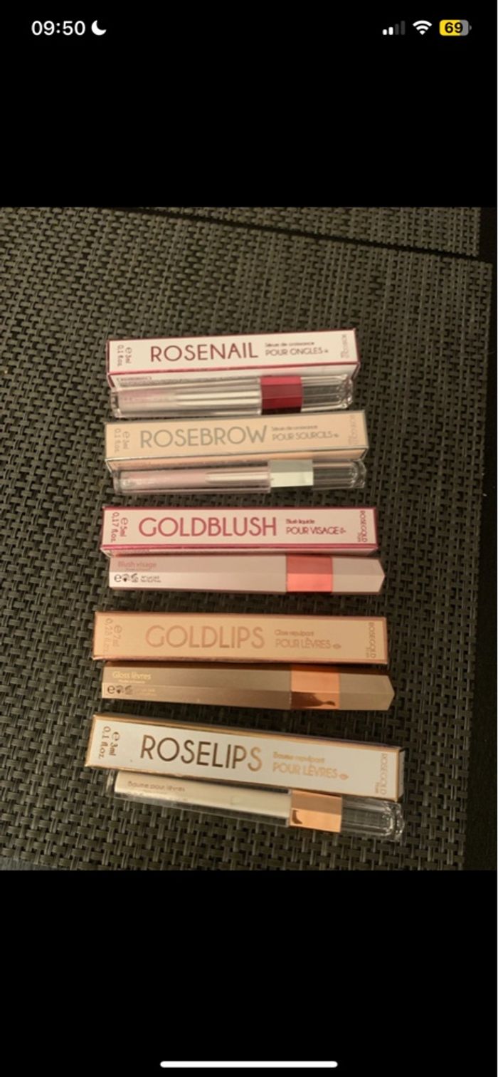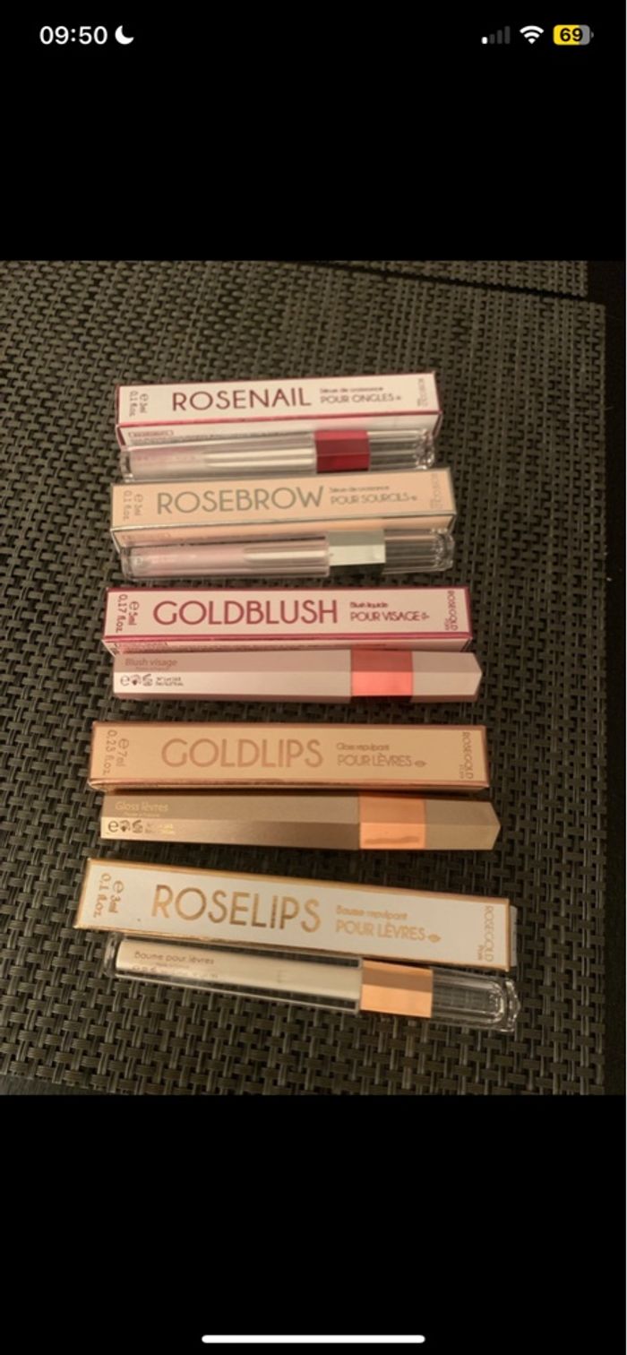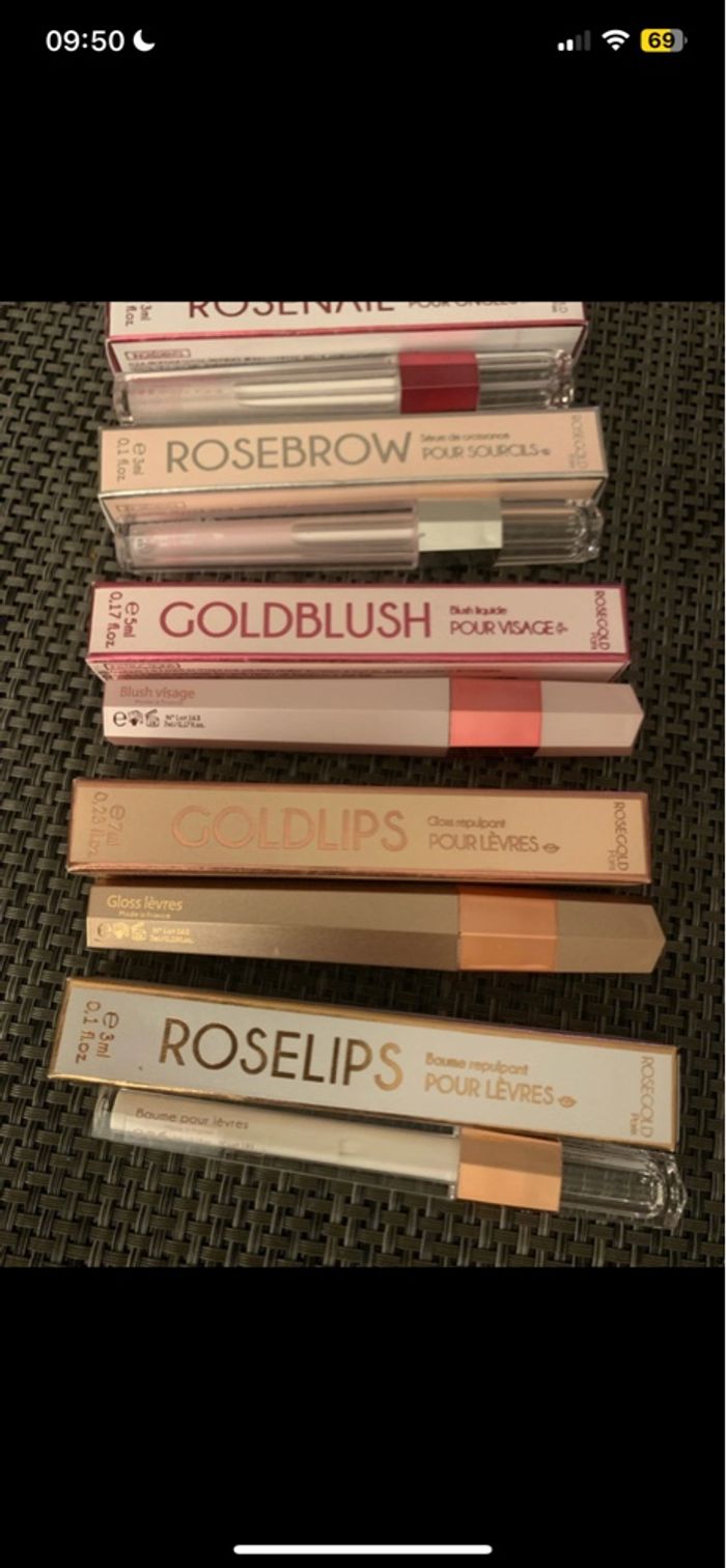 Lot de 5 produits maquillage & soin – neufs, jamais utilisés, marque Rosegold.