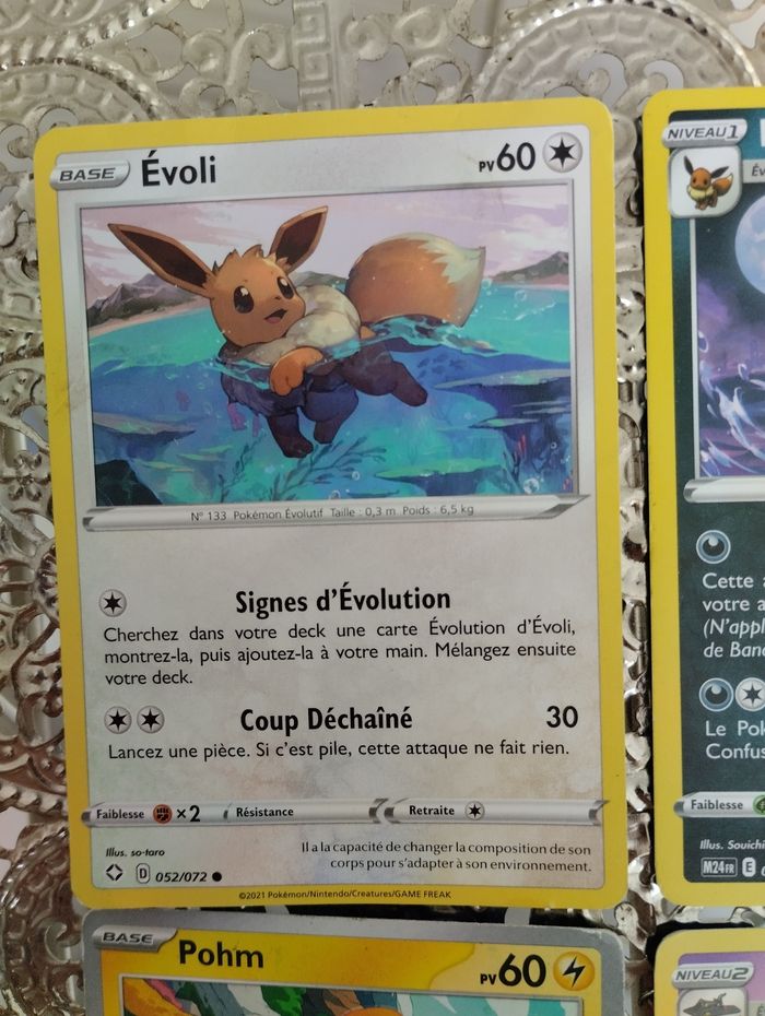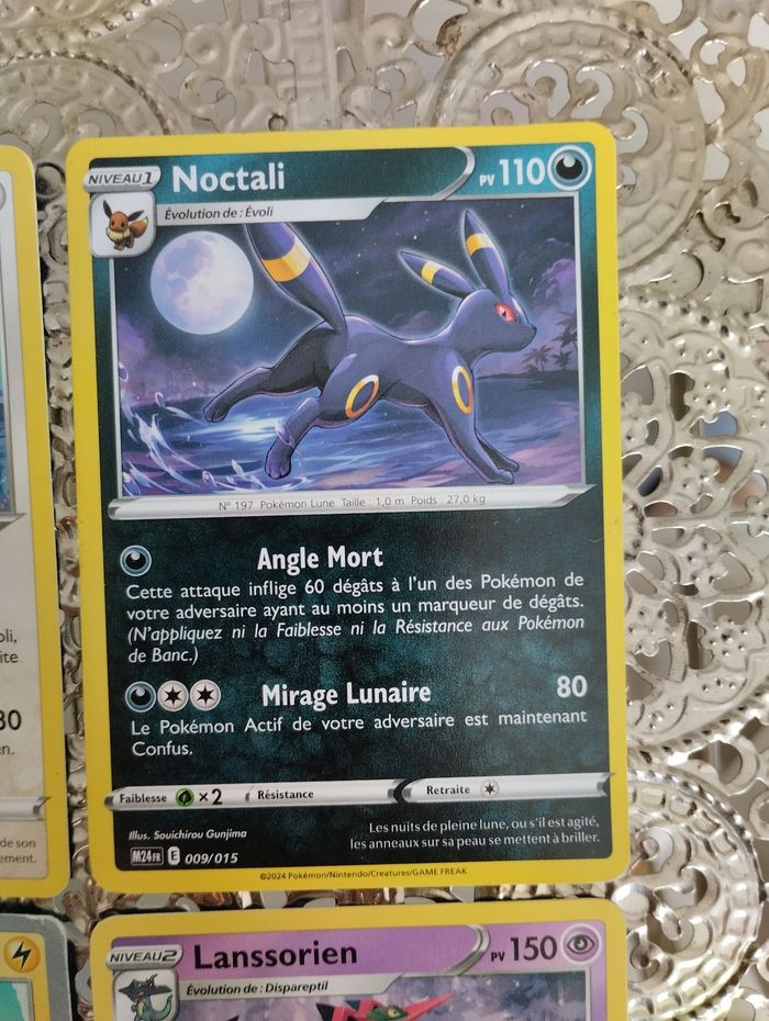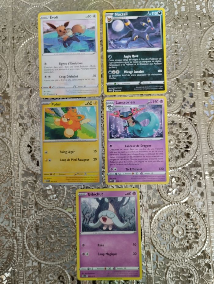 En parfait état pour 4 cartes : Lanssorien Evoli Noctali Bibichut Une en état moyen : Pohm, l'arrière est abîmé cf photo #cartepokemon #lanssorien #collection