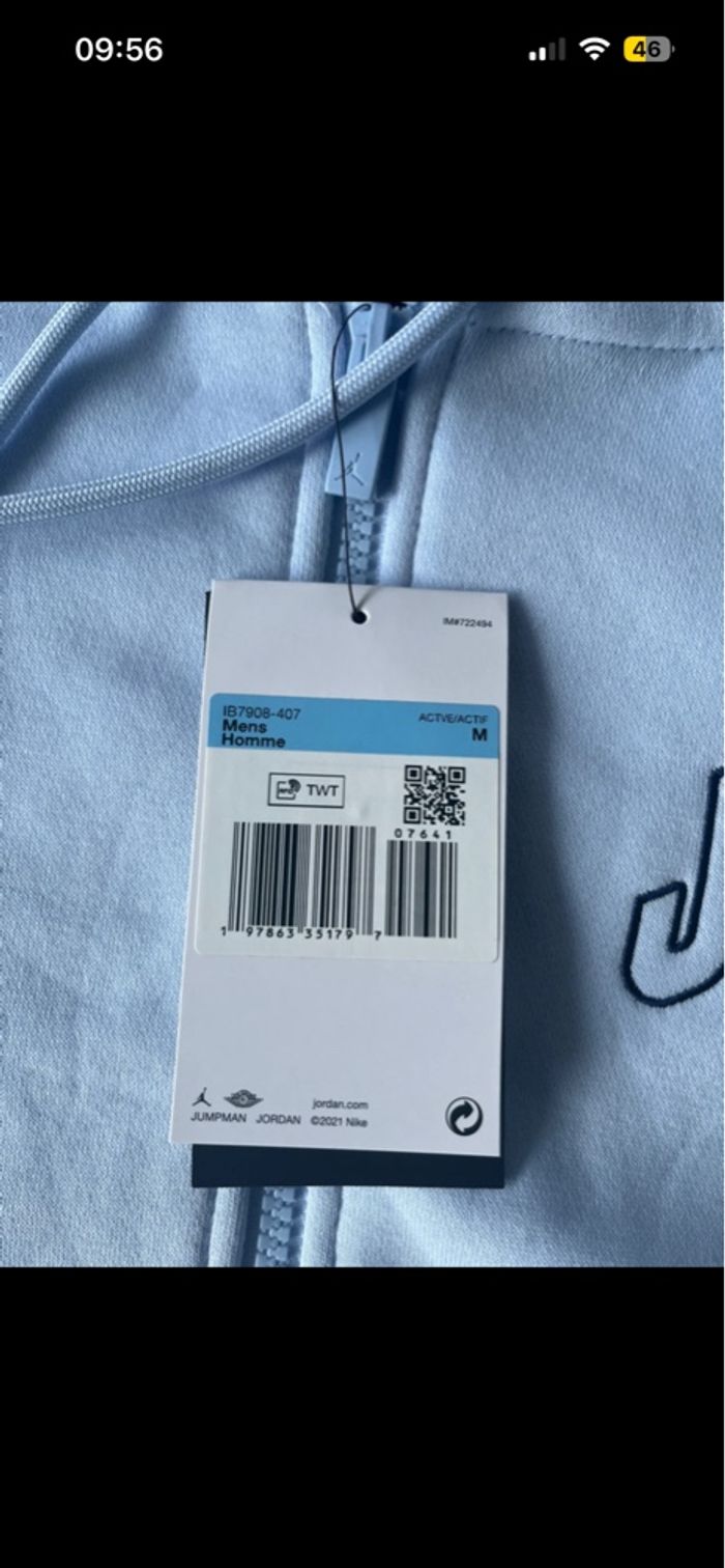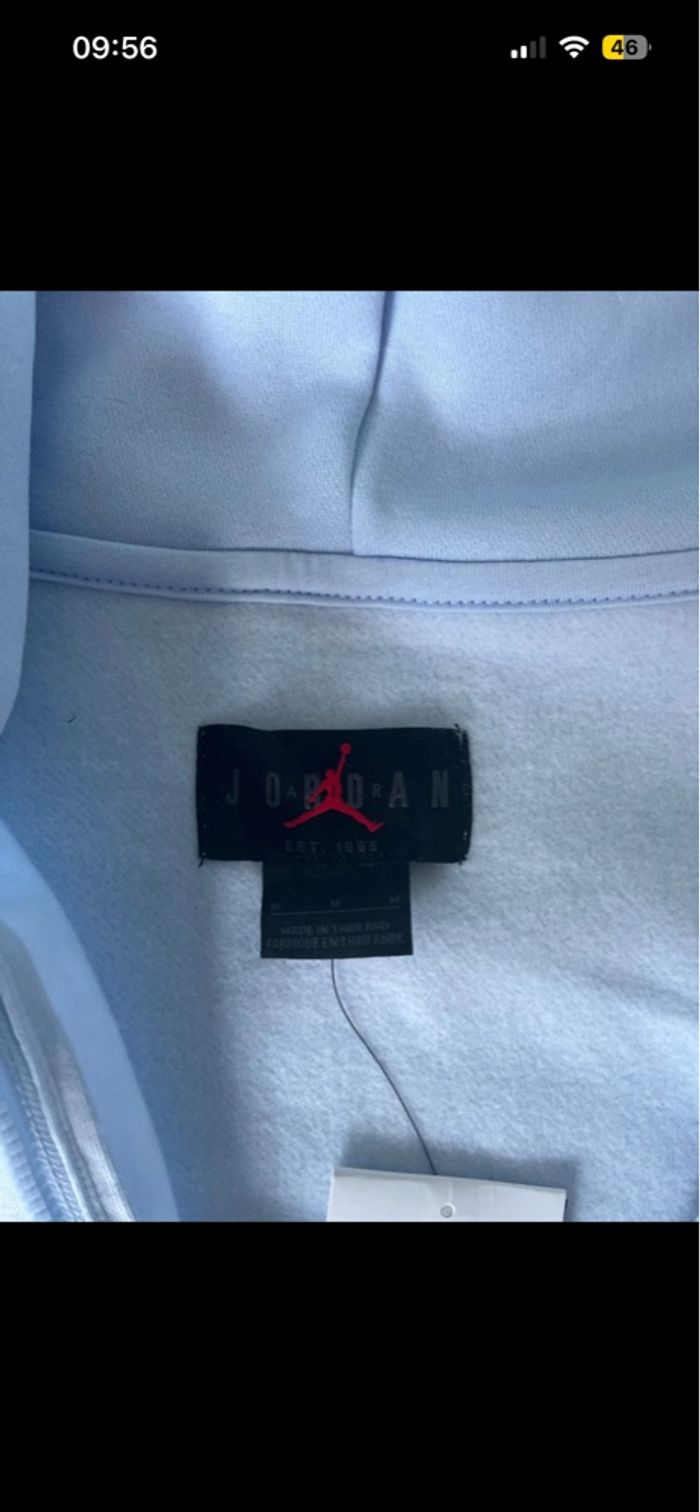 Gilet zipe a capuche Jordan Homme Bleu Ciel Clair M neuf etiquette