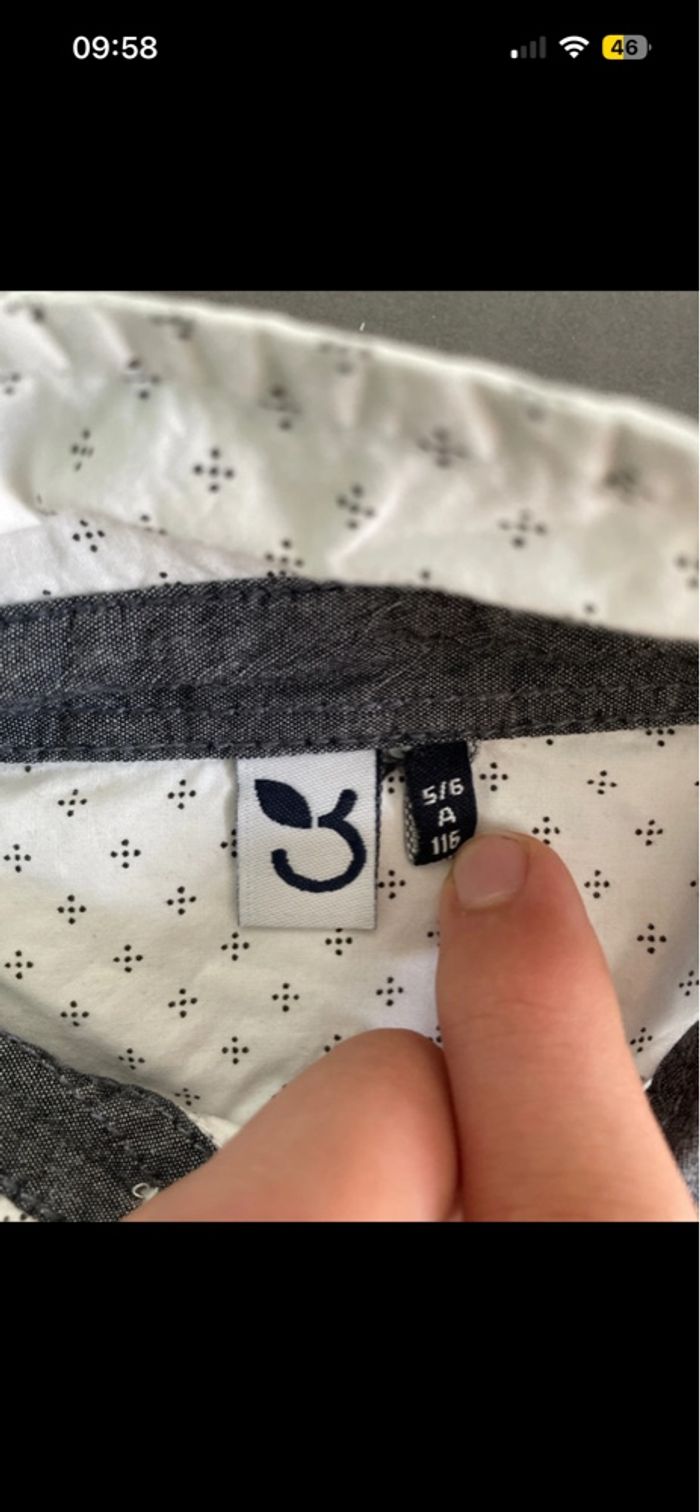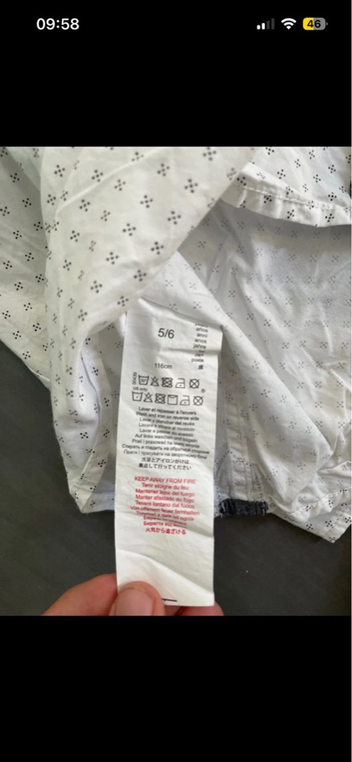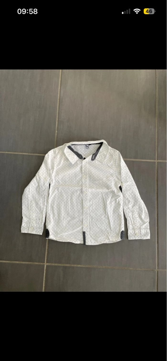 Chemise manches longues blanc motif noir garçon 3 pommes 5ans