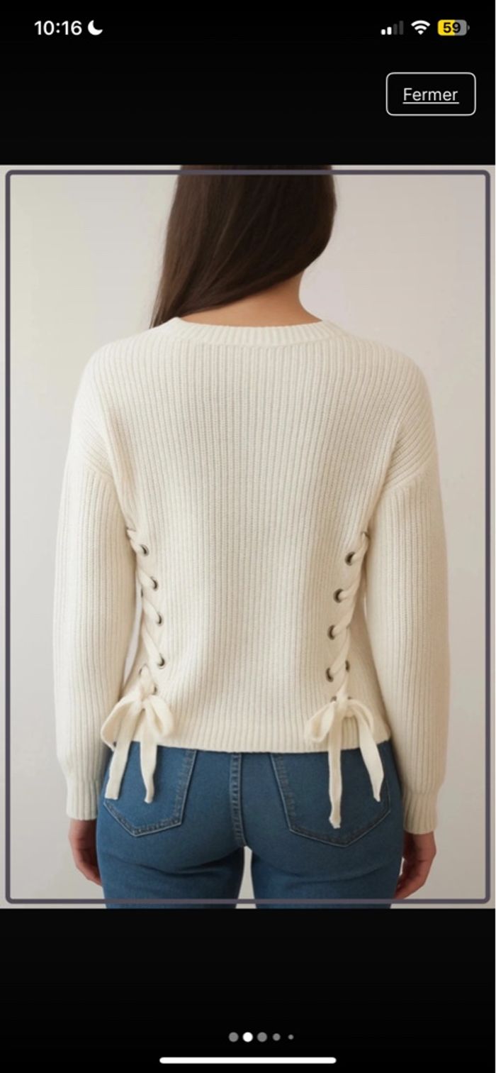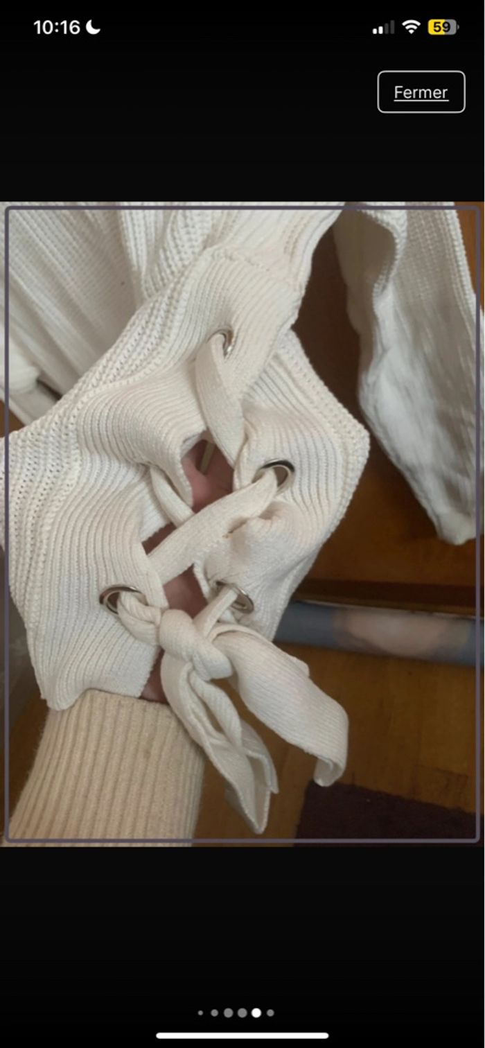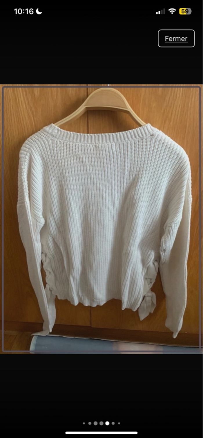 Très joli pull blanc en maille, avec détail lacets sur les côtés qui apporte une touche originale et tendance.