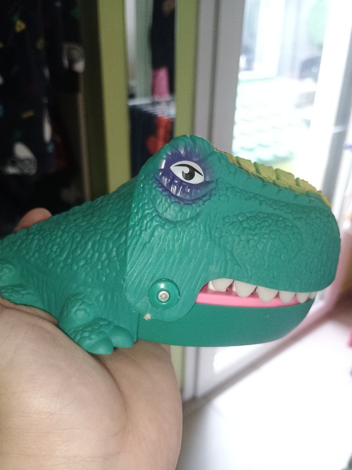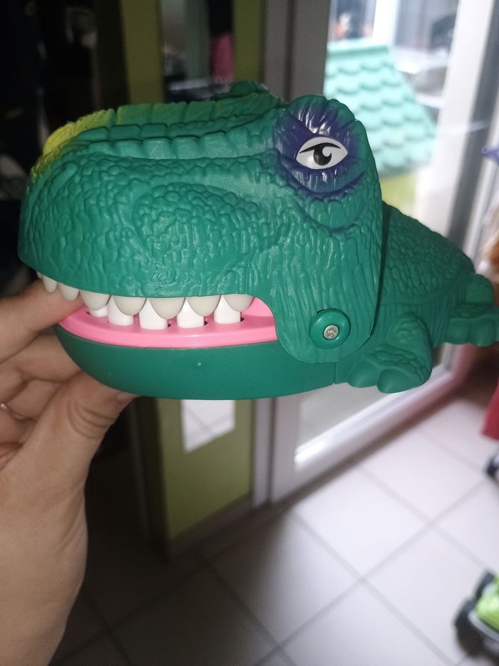 Dinosaure qui mord le doigt qd on appuie sur ses dents