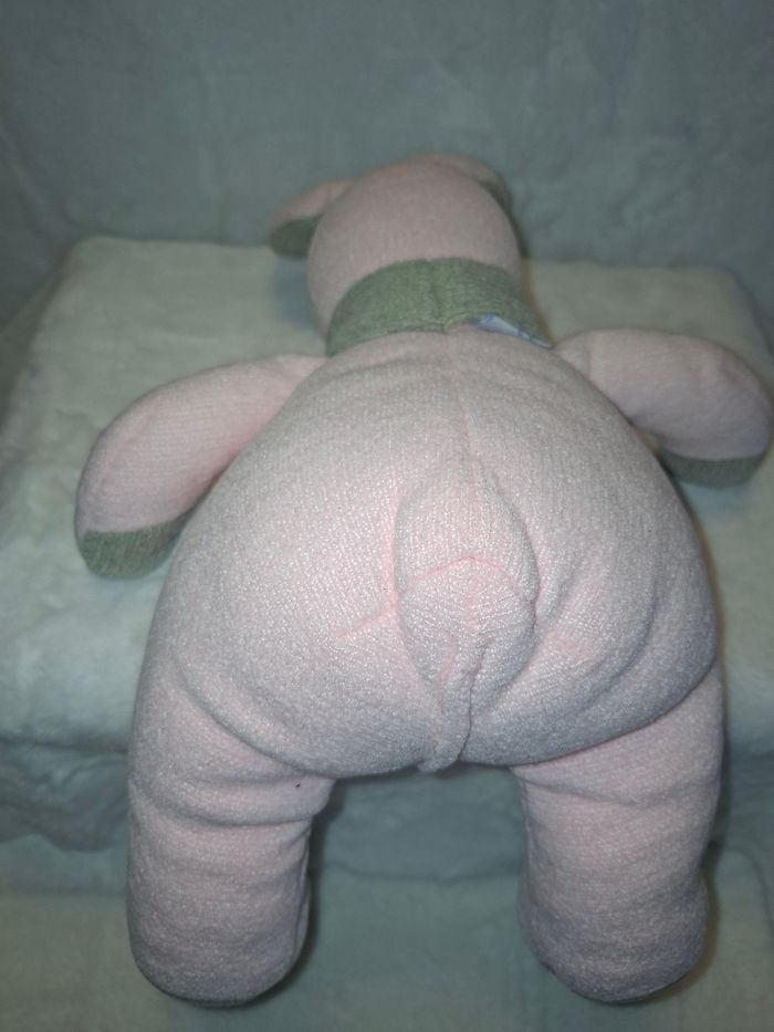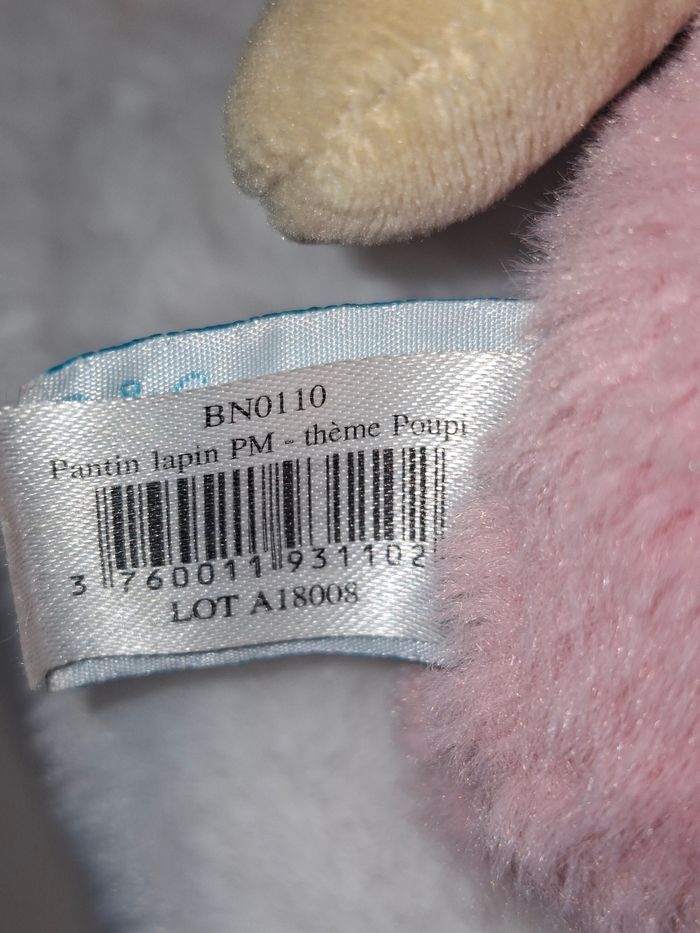 Peluche velours rose/beige Tartine et Chocolat environ 30 cm assise (système patte gauche ne marche plus) + doudou velours mouchoir lapin rose/crème Baby Nat thème Poupi