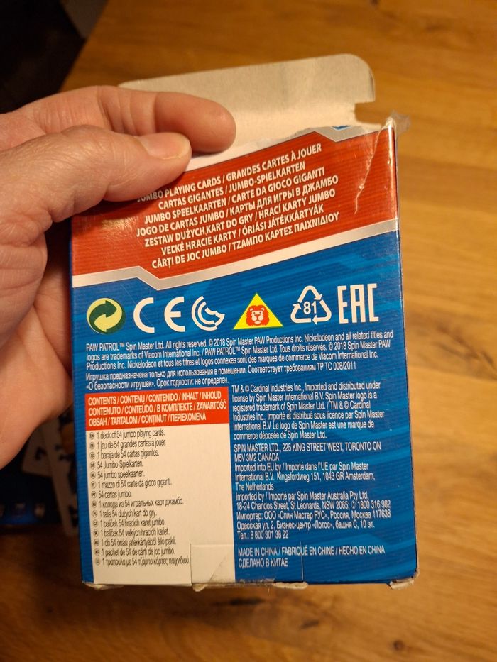 Domino : jeu état neuf, jamais utilisé Cartes a jouer grand format, les cartes n’ont jamais servies mais la boîte a été mal rangée du coup ne ferme plus.