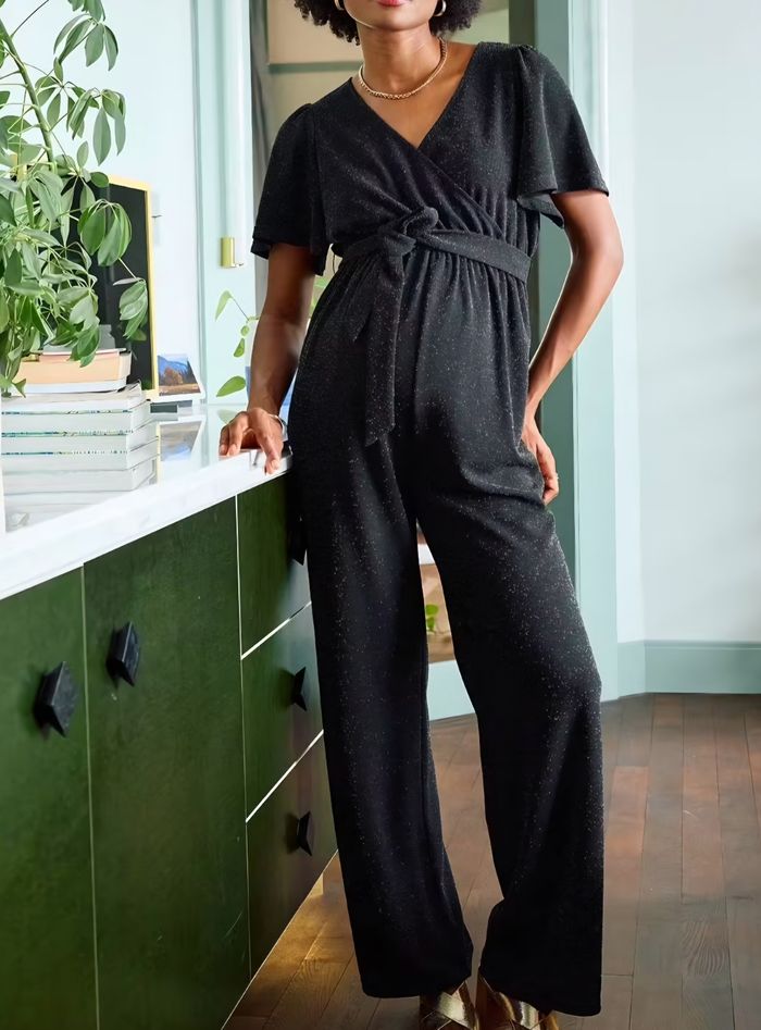 Combinaison velours pailleté grossesse et allaitement - noir