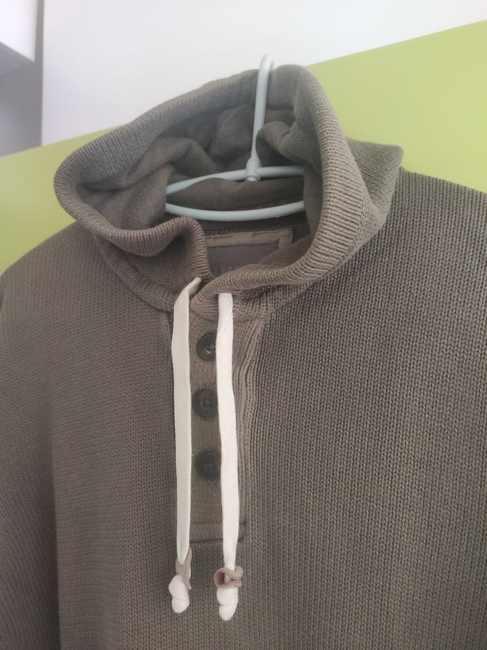 En bon état, maille serrée 100% coton, 2 poches, capuche doublée, trois boutons à l'encolure. Bien mis, un peu délavé mais en bon état. Taille L, collection logg de H&M