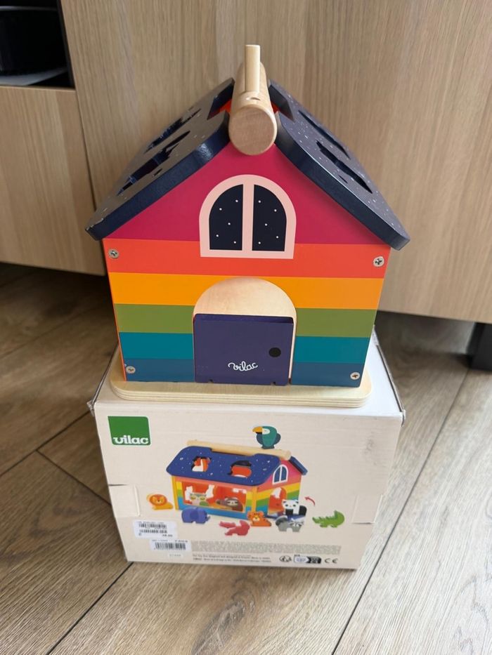 Un jouet d’éveil ludique et éducatif pour les enfants dès 2 ans : 10 animaux colorés à encastrer dans le toit de la maison.