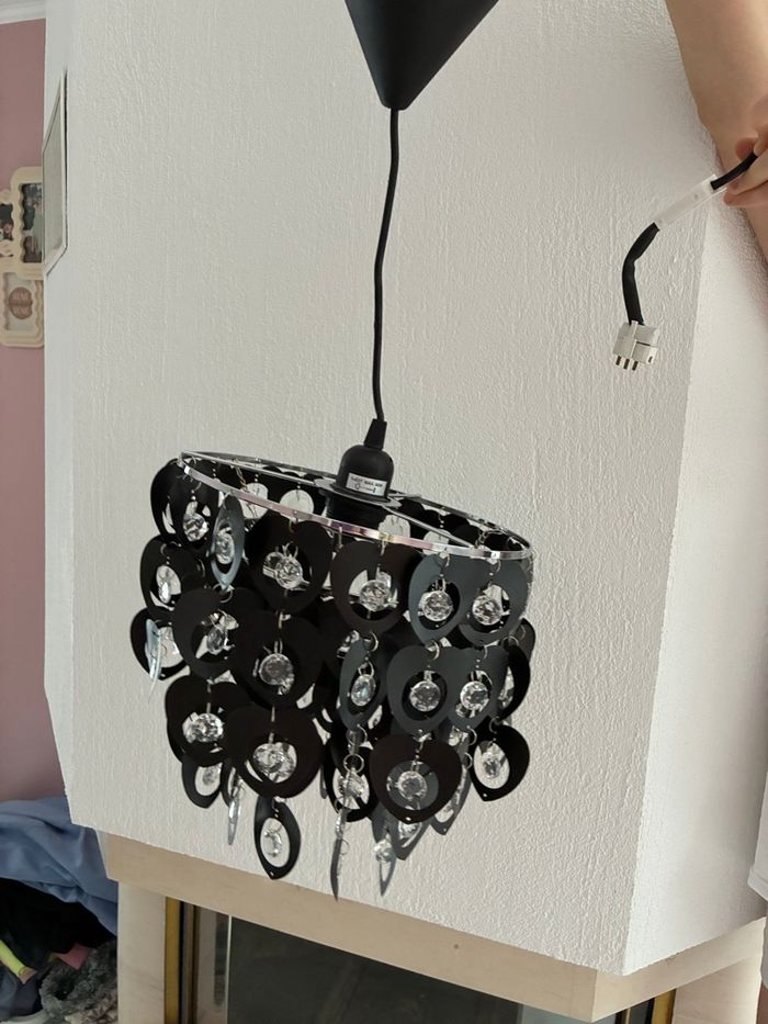 Plafonnier noir en très bon état Mesure environ 30 cl de haut et 25 cl de diamètre