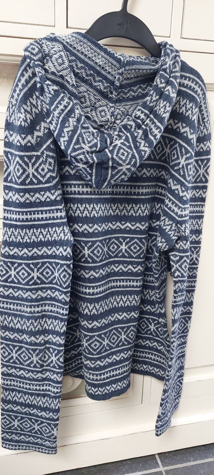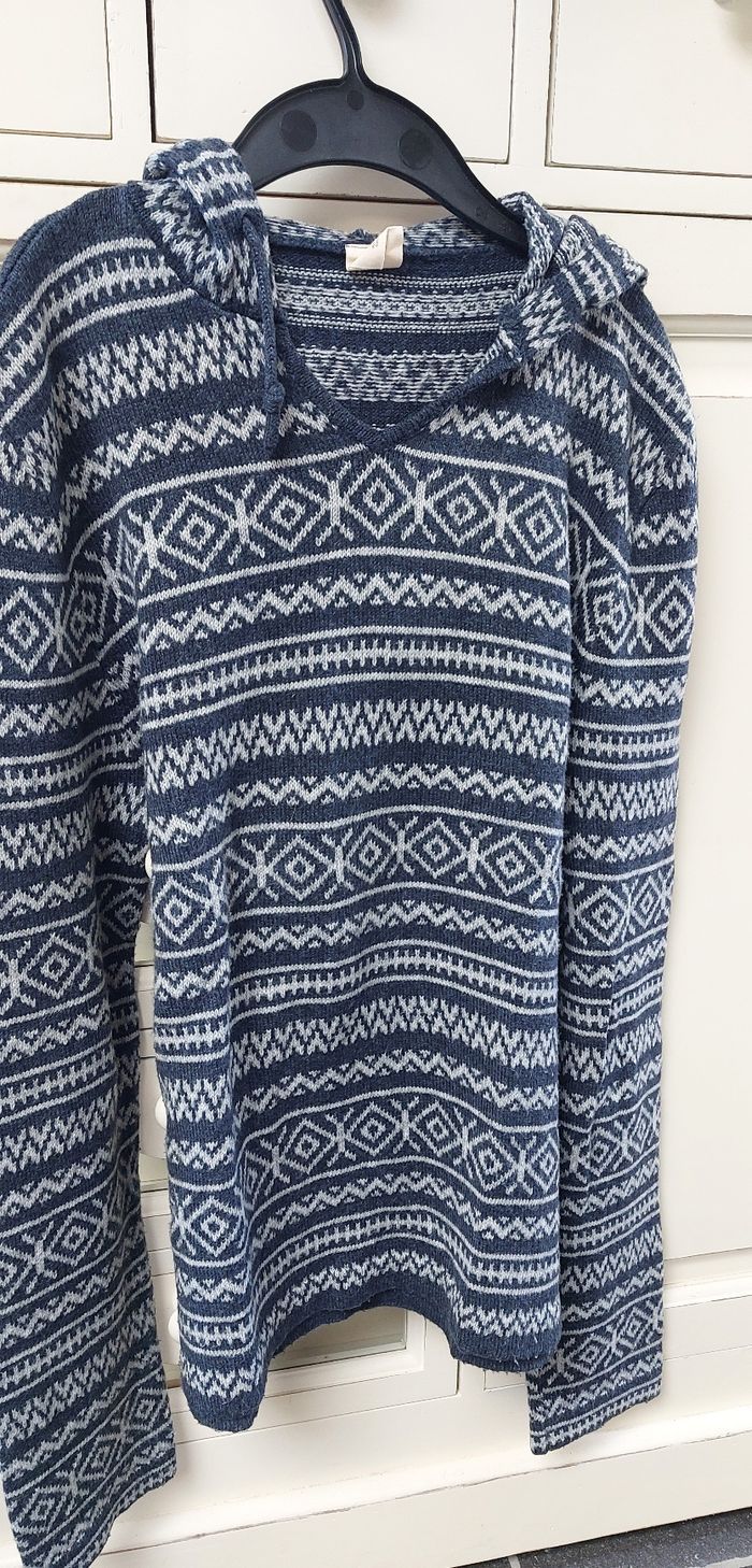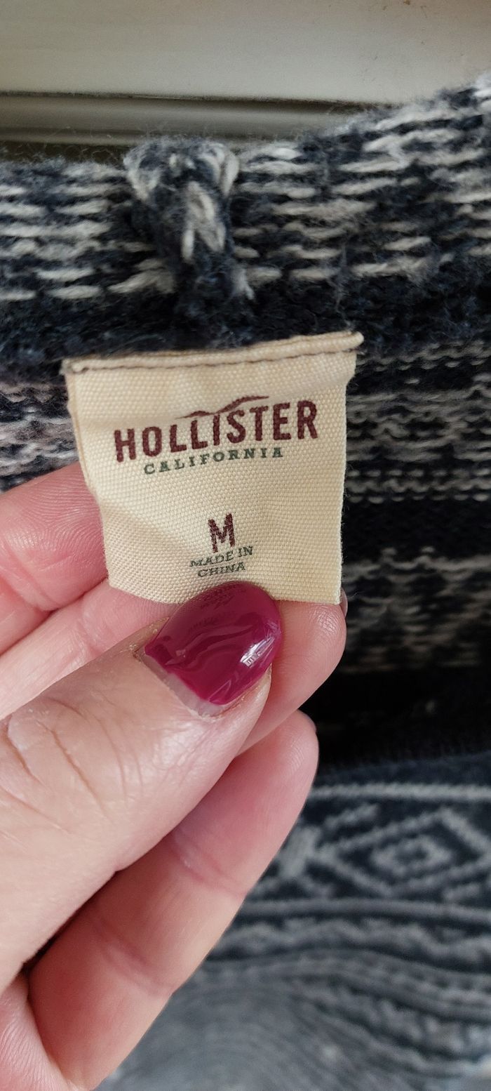 Très joli pull col V à capuche de chez Hollister, en très bon état et très chaud 👍 Taille M Acrylique, polyester et coton