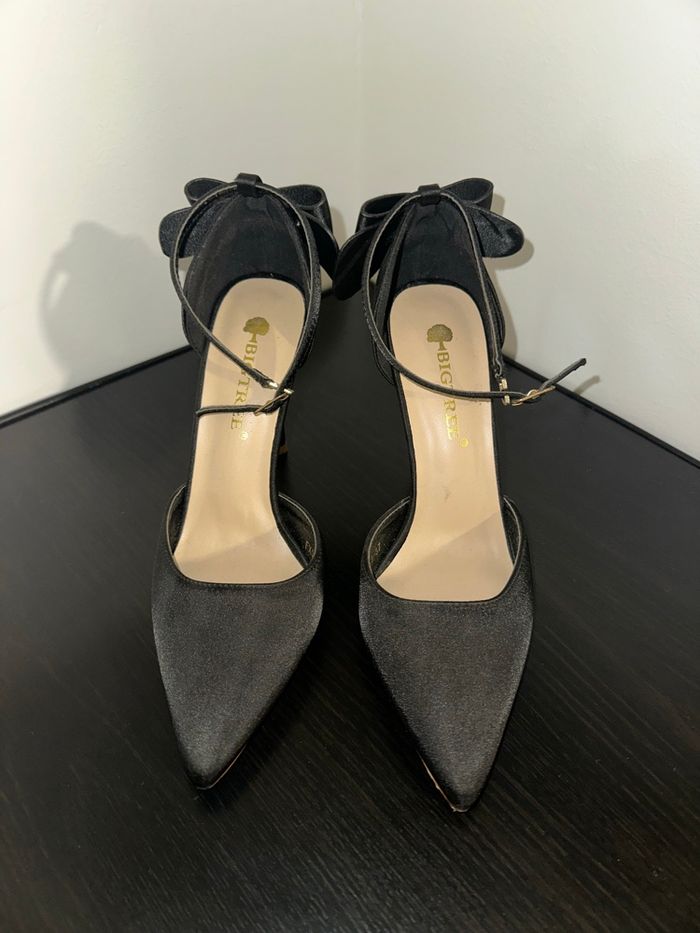 Escarpins à talons noir flots noeuds satin T37 - photo numéro 3