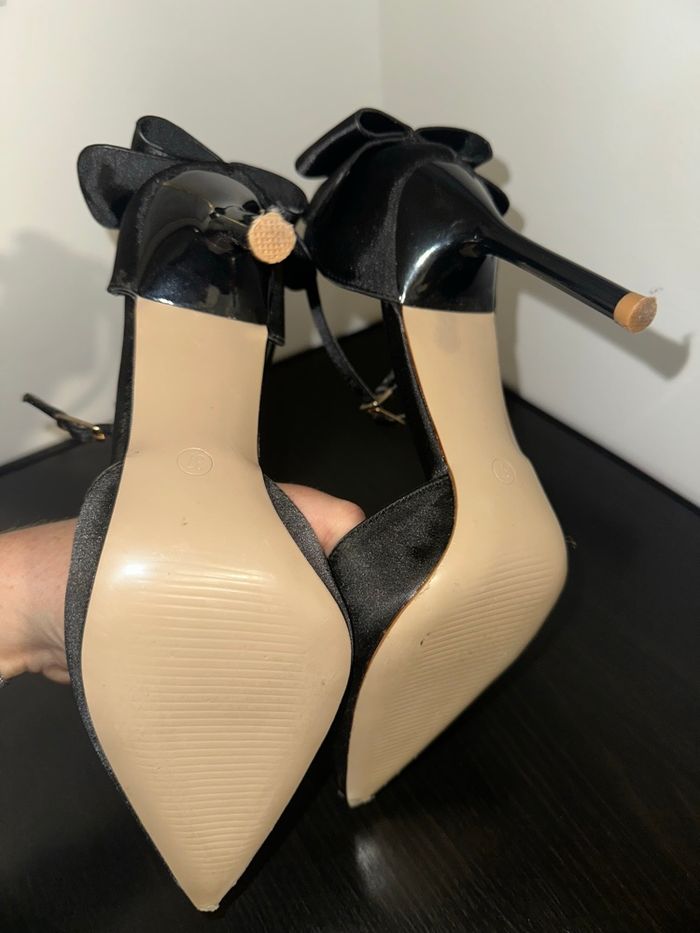 Escarpins à talons noir flots noeuds satin T37 - photo numéro 4