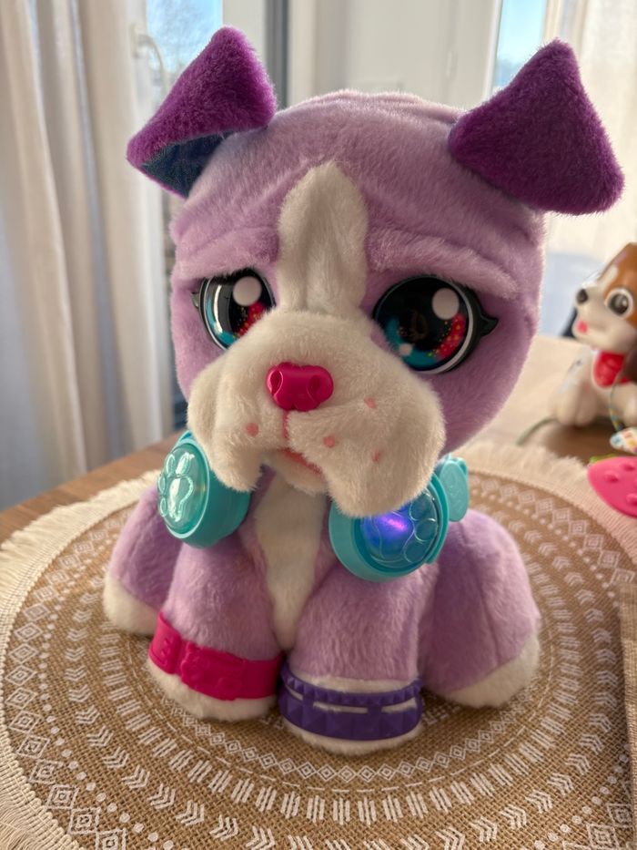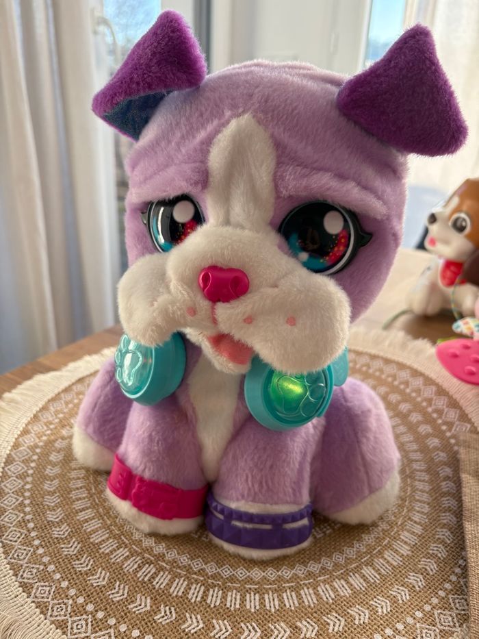 Peluche interactif fonctionnant à piles ( que je laisserais dans le chien) Quasi neuf. Une vidéo sera faite au moment de l’envoi pour prouver son bon fonctionnement 🤗 3 MODES DE JEU : Mode BeatBoxing : l’enfant touche les différentes zones pour déclencher des sons de BeatBoxing et ajoute sa voix déformée. Mode DJ : l’enfant peut mixer, scratcher la musique, enregistrer sa voix ou encore ajouter des sons de batterie. Mode Câlinage : Dj demande des câlins, des caresses et réagit en aboyant et en faisant des sons amusants. MOTORISÉ : Sa tête et ses bajoues s’animent au rythme de la musique. INTERACTIF : Des boutons sensitifs se trouvent sur sa tête, son nez et sa patte gauche pour interagir ou pour créer ses propres musiques ou sons de Beatbox. Son casque s’illumine et les 2 boutons situés sur les écouteurs permettent de sélectionner un mode de jeu et d’ajouter des effets sonores.