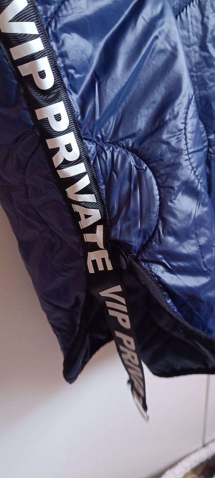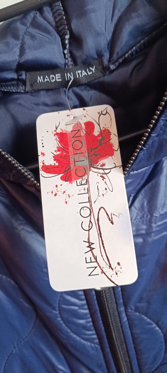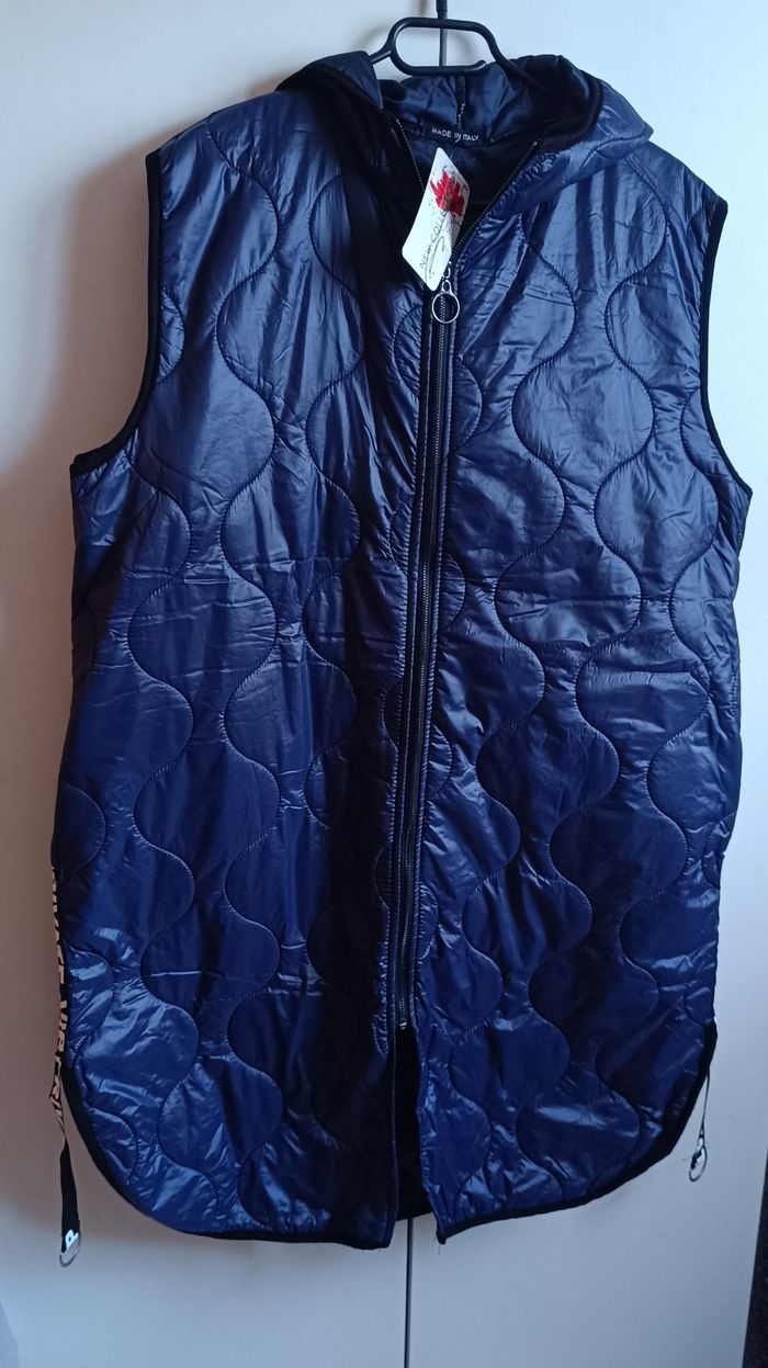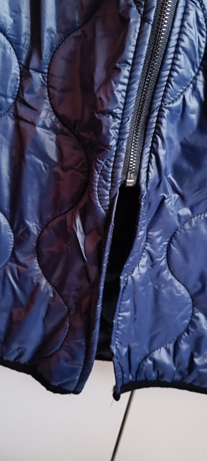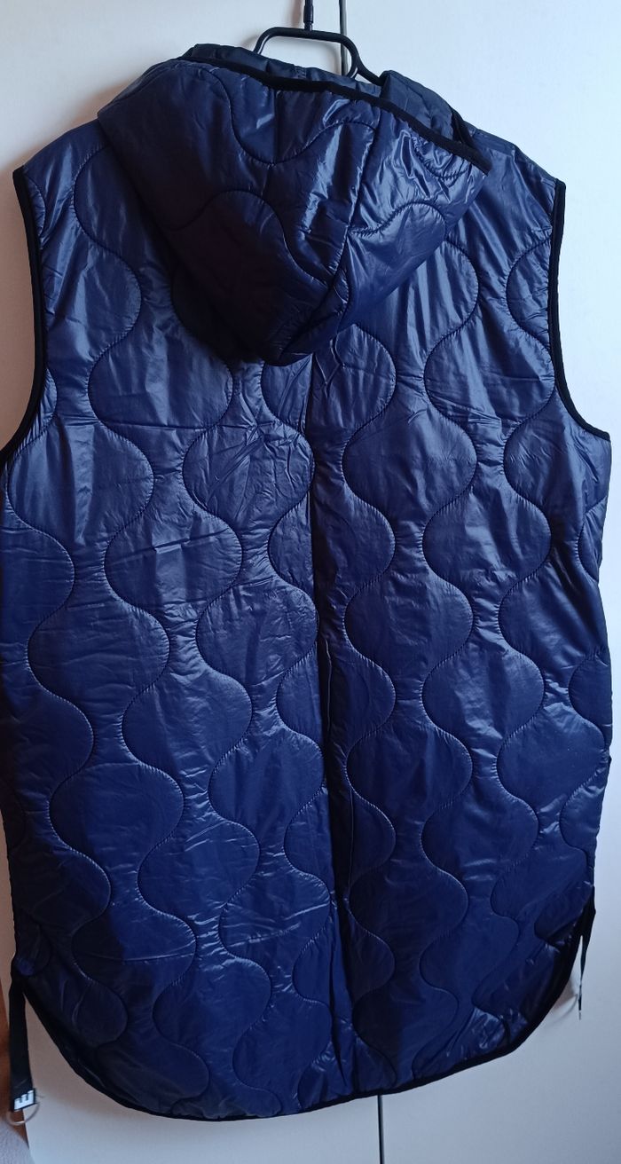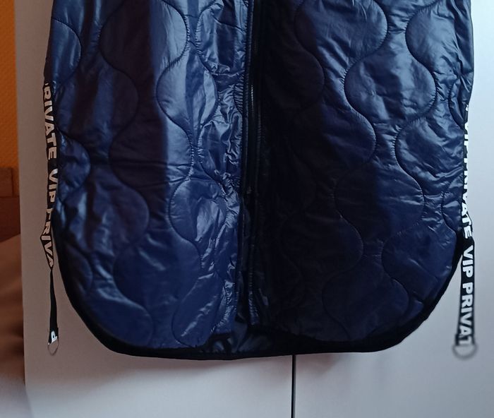 Veste longue bleu marine brillant molletonnée à capuche Zippée avec 2 poches Elle est neuve Taille unique