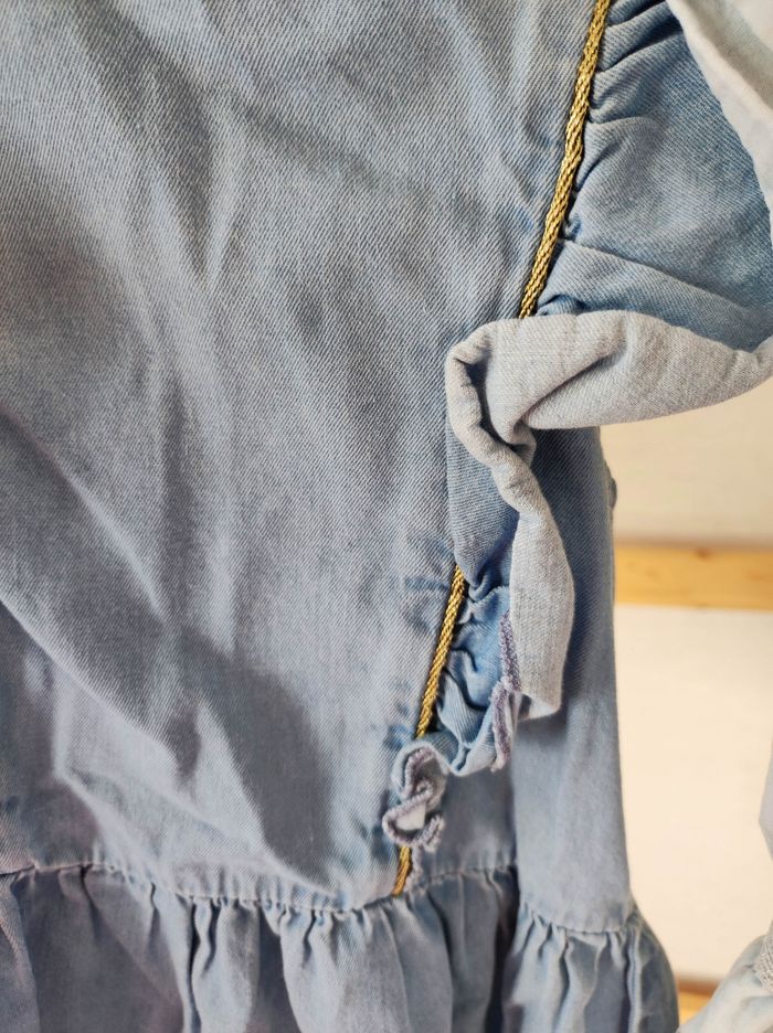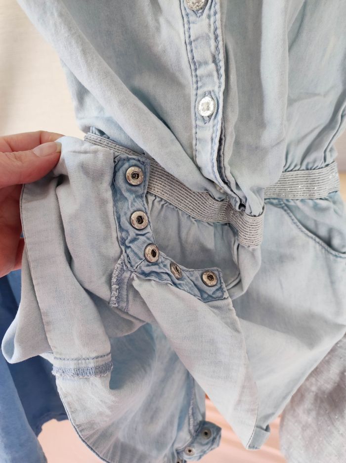 En bon état. Pas de tâches, pas de trous mais portées. - 1 robe bleu jean Kiabi qui s'ouvre tout le long du dos. - 1 combishort Tape à l'oeil qui s'ouvre en bas, pratique pour le change. - 1 robe grise et dentelle orchestra indiquée en 4 ans mais elle taille petit et convient à du 3 ans.