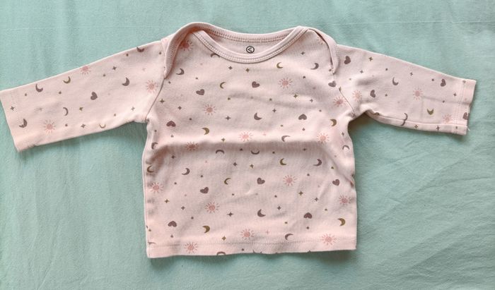 Tee-shirt manches longues fille Oeko-Tex rose soleil lune 62-68 cm - photo numéro 1