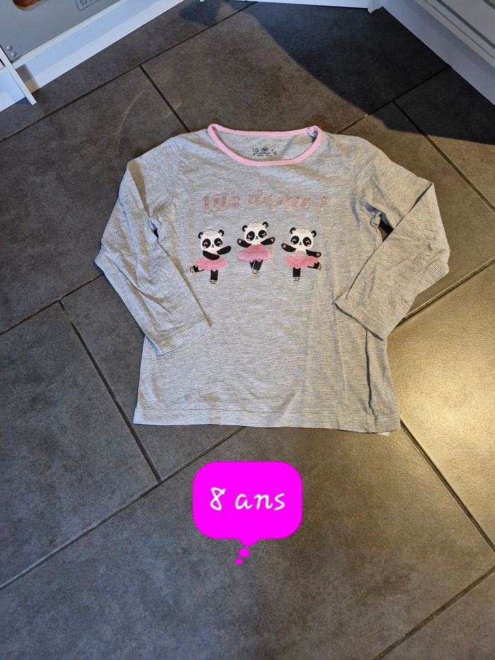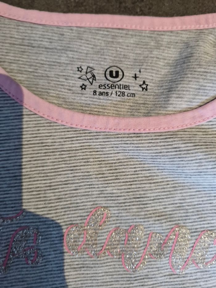 T-shirt manches longues fille 👧 Taille 8 ans Marque : U essentiel Gris rose et blanc Réduction sur les lots activé Bac2