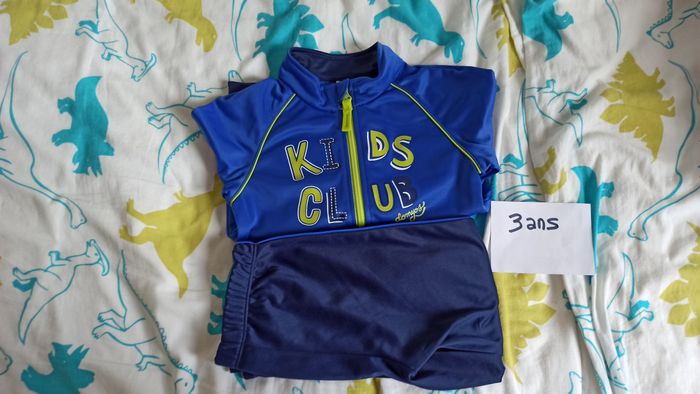 Jogging / survêtement de sport 3 ans acheté chez Decathlon. Bon état général. Le bas est légèrement usé au niveau des genoux.